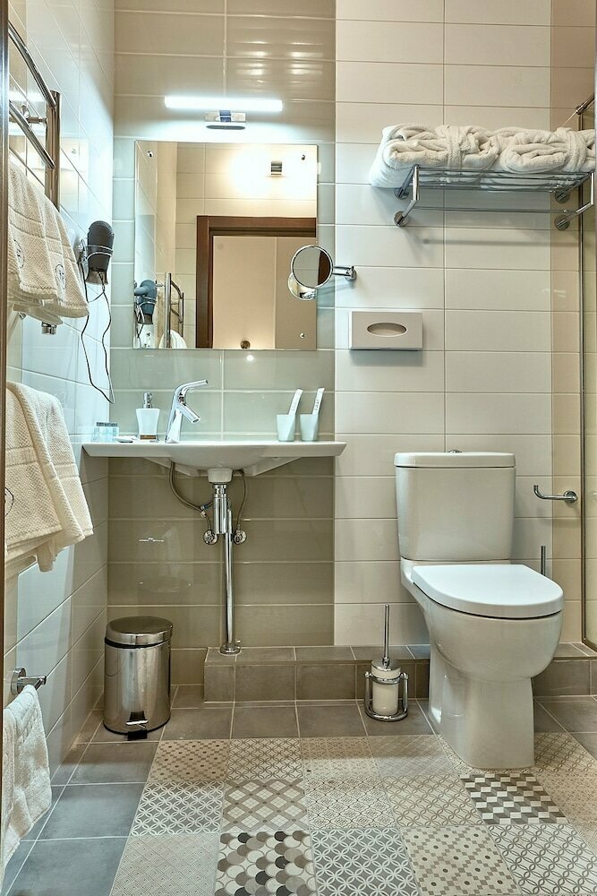 - Тёплый пол и электрический полотенцесушитель в ванной.