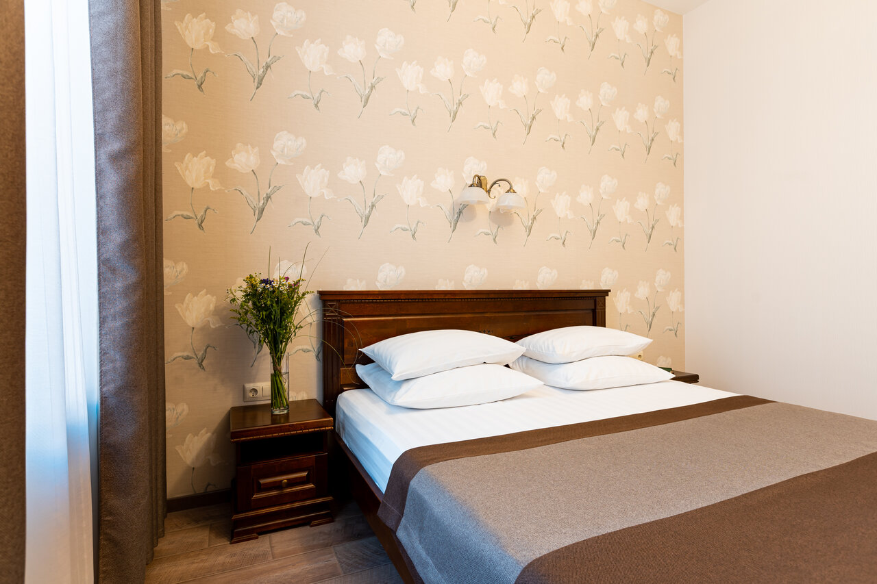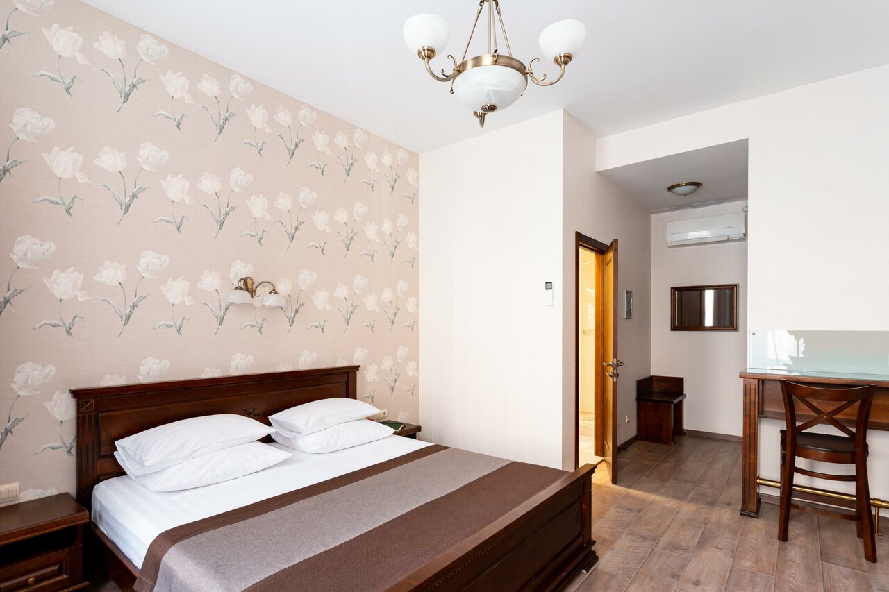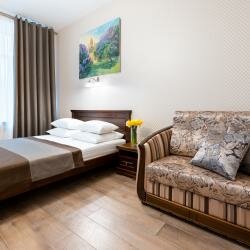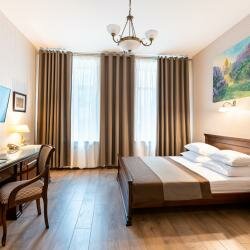 Уютные и самые комфортабельные номера категории Люкс. Площадь каждого номера 50 кв. м. Вид из окна — на пешеходную аллею или внутренний двор .В каждом номере:Одна большая кровать, одна односпальная кровать с матрацами класса люкс, письменный сто...