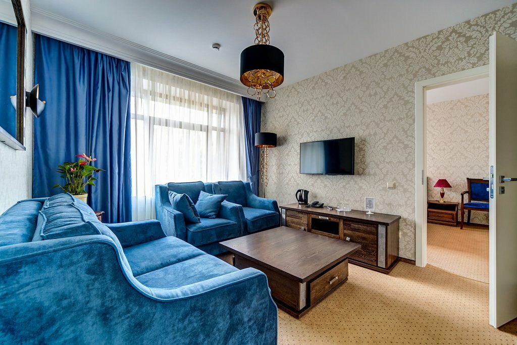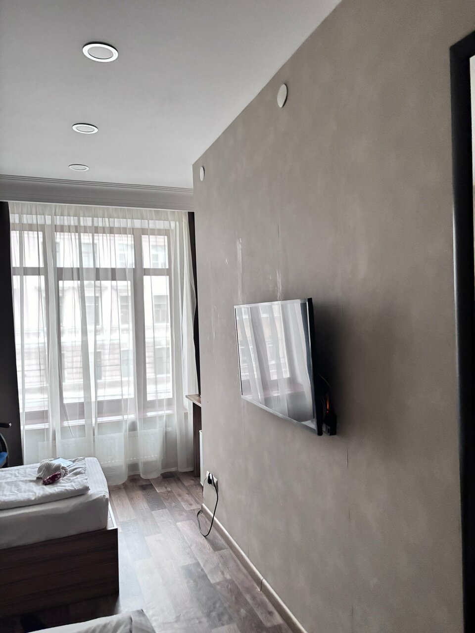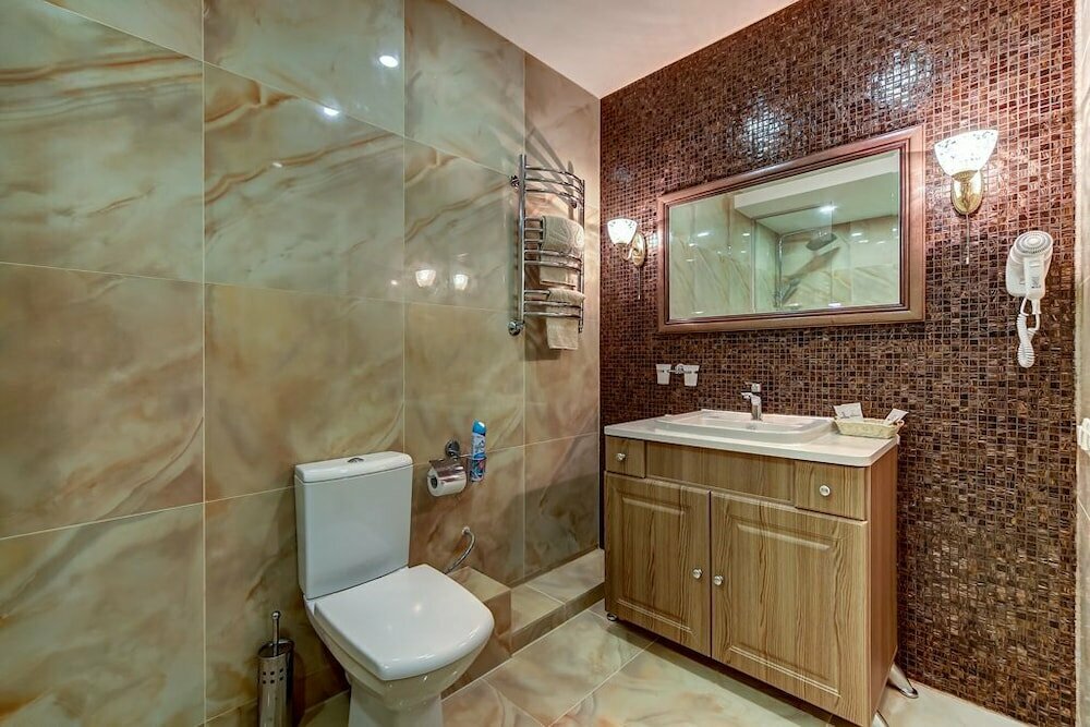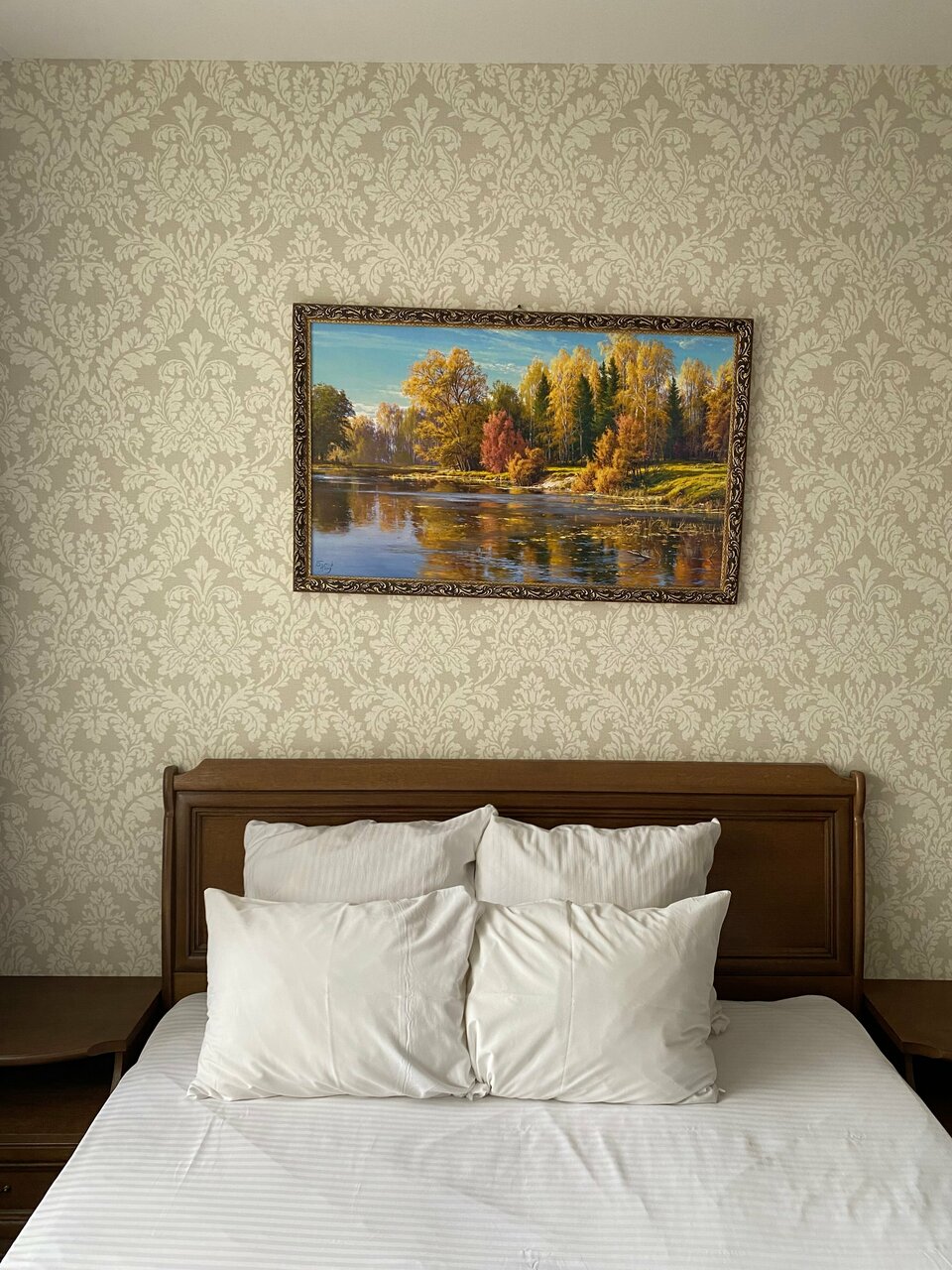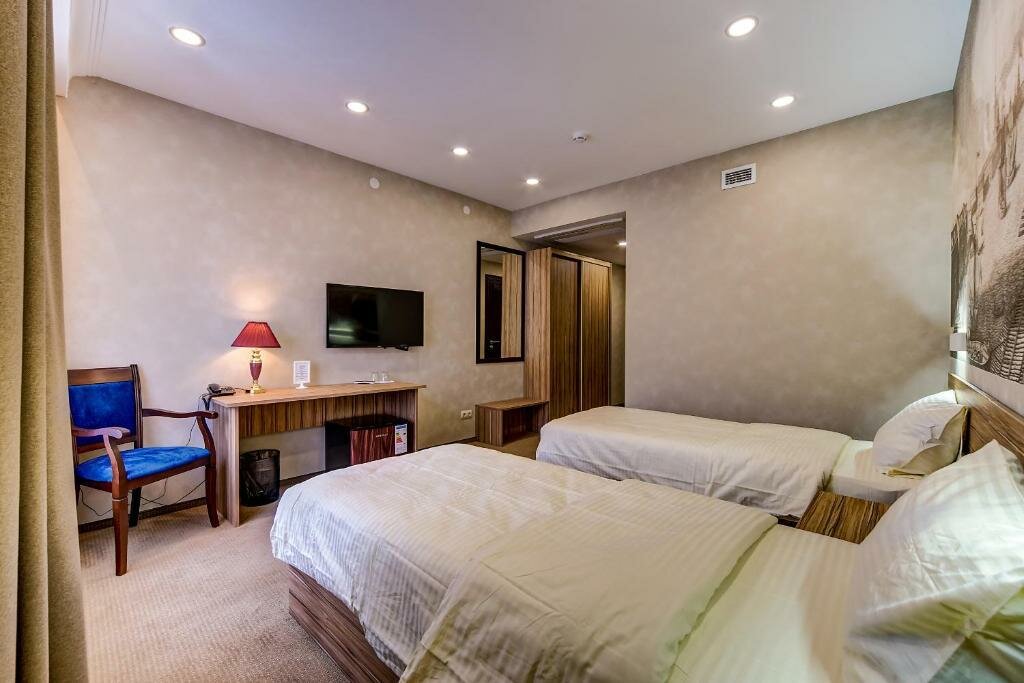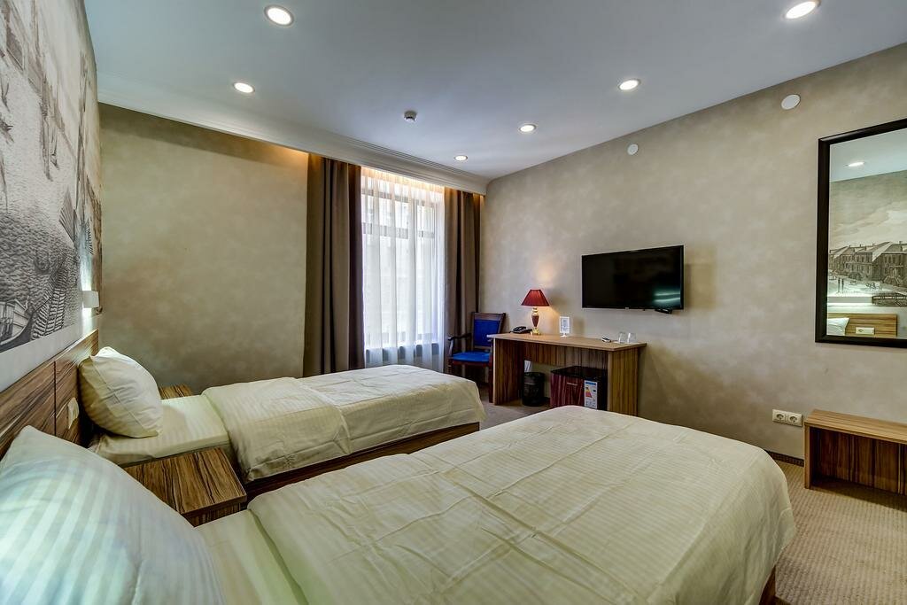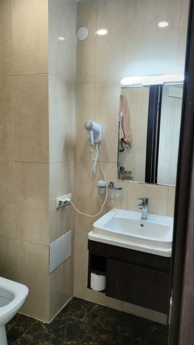 На фасаде отеля 4 *,но Чистота в номере оставляет желать лучшего. К санузлу вопросов нет- чисто, свежо , блестит. В комнате на полу ковровое покрытие светло-коричневого цвета, которое ни разу не видело качественной чистки. Все в пятнах и по периметру пылевые комочки. Полотенец в отеле 4* должно быть по 4 штуки на каждого постояльца, а приносили только по 3, хотя этого все же хватало вполне. Уборку делали регулярно с заменой белья и полотенец, здесь все в порядке. Кровати чистые, на матрасе защитный чехол. В номере нет ни чайника, ни холодильника, только кулер в общем холле. Светильников и розеток достаточно. Есть телевизор, с каким-то специфическим управлением/ показывает только Ютюб. Расположение удачное, напротив отеля остановка общественного транспорта- добраться в любую точку города не составит труда. В целом, жить можно. Если внимательней отнесутся к чистоте-гости будут довольны. По ощущениям сервис на четверку, но одну звезду снимаю за ковролин.