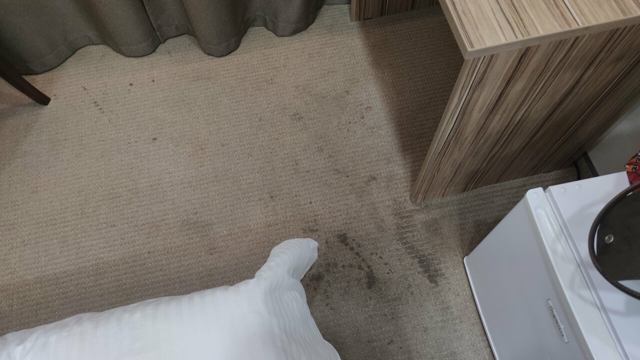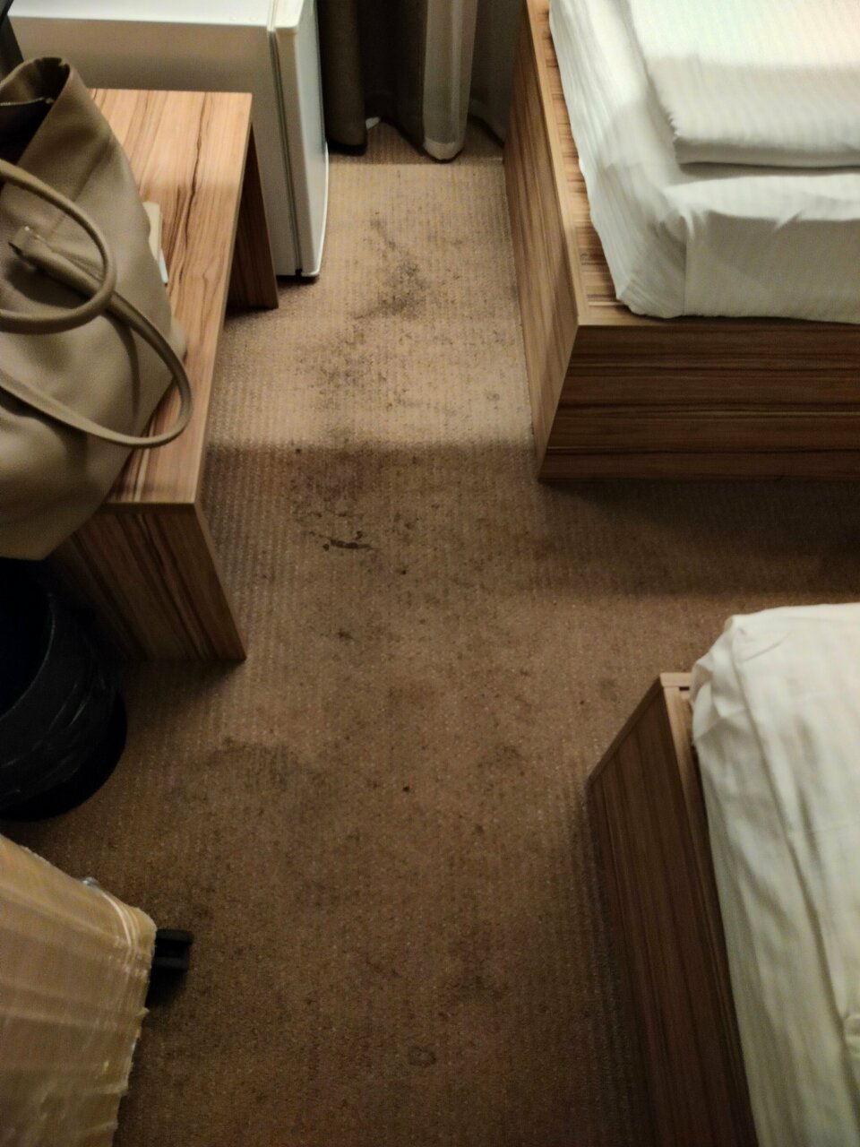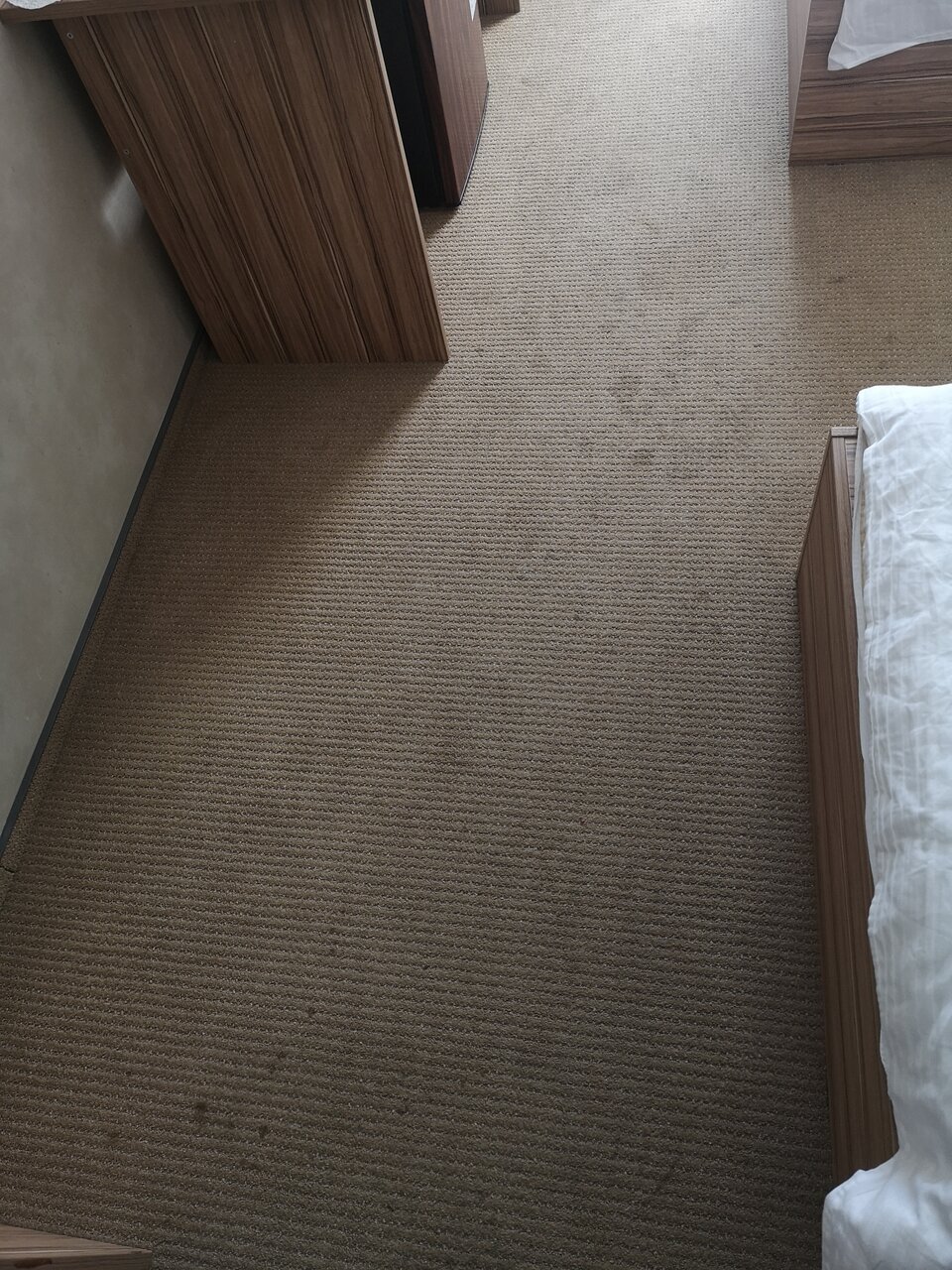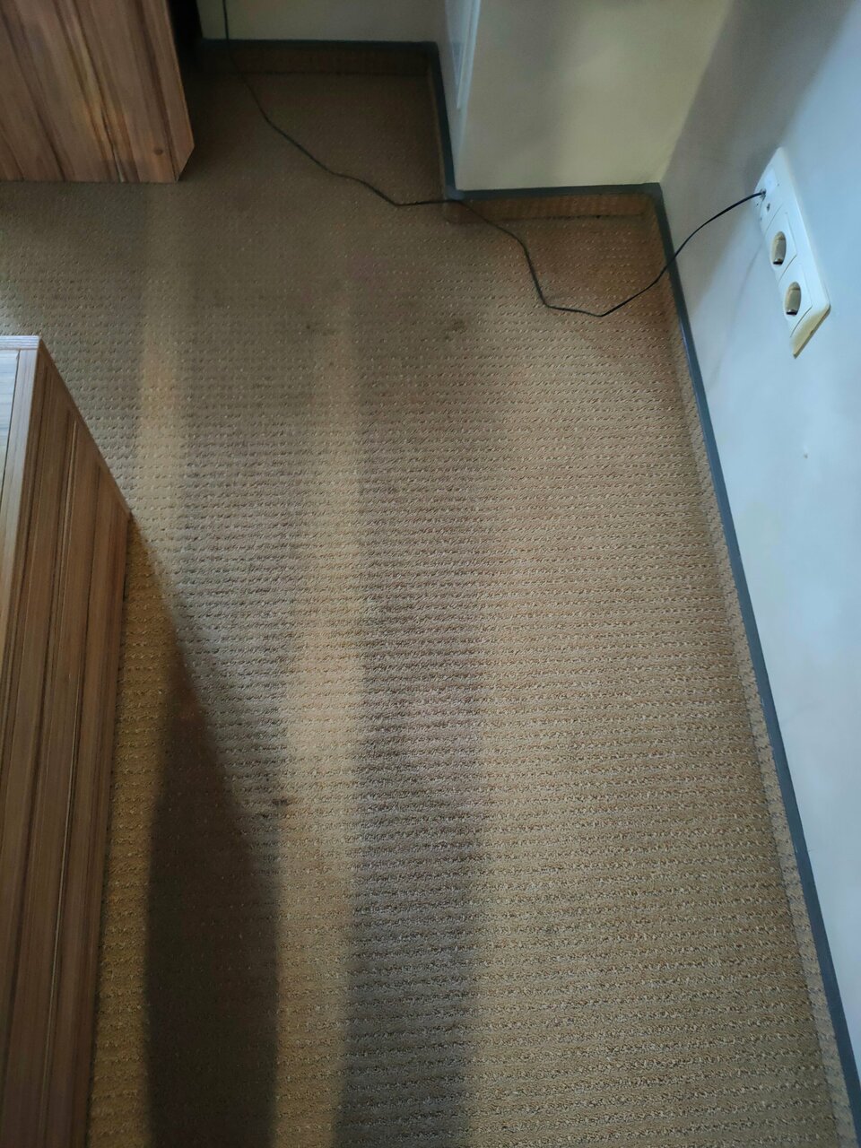 Высокая слышимость-через стенку слышно о чем говорят соседи, такое ощущение, что находятся рядом с тобой. Ковролин в номере весь в пятнах, грязно.
