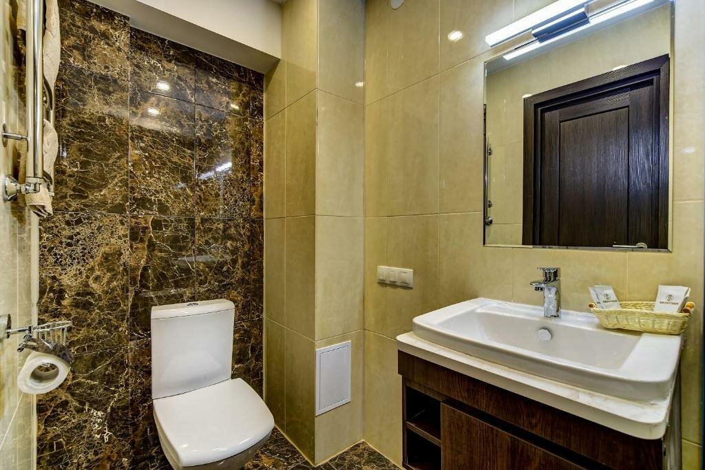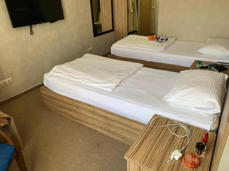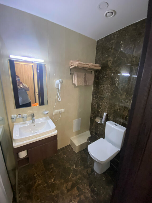 Для своего ценового сегмента — прекрасный отель. Обслуживание 5 Номера 4+. В номере слегка тепло учитывая температуру на улице 4градуса. Кондиционер уже не работает (нам сказали он функционирует только летом). Да и как писали в отзывах к отелю, ковры на полу грязные — да это так, но ребят вы же сами можете снимать свои тапки при входе — просто кто-то ходит в обуви по дому вот и следы на полу, мы же решили эту проблему тем что купили себе тапочки и всё. Горячая вода есть Стартерпак в виде мыла, шампуня и геля для тела есть. Светло в помещении Есть минихолодильник В номере чисто- и постельное свежее Всё отлично. Фотографии при бронировании — фактические