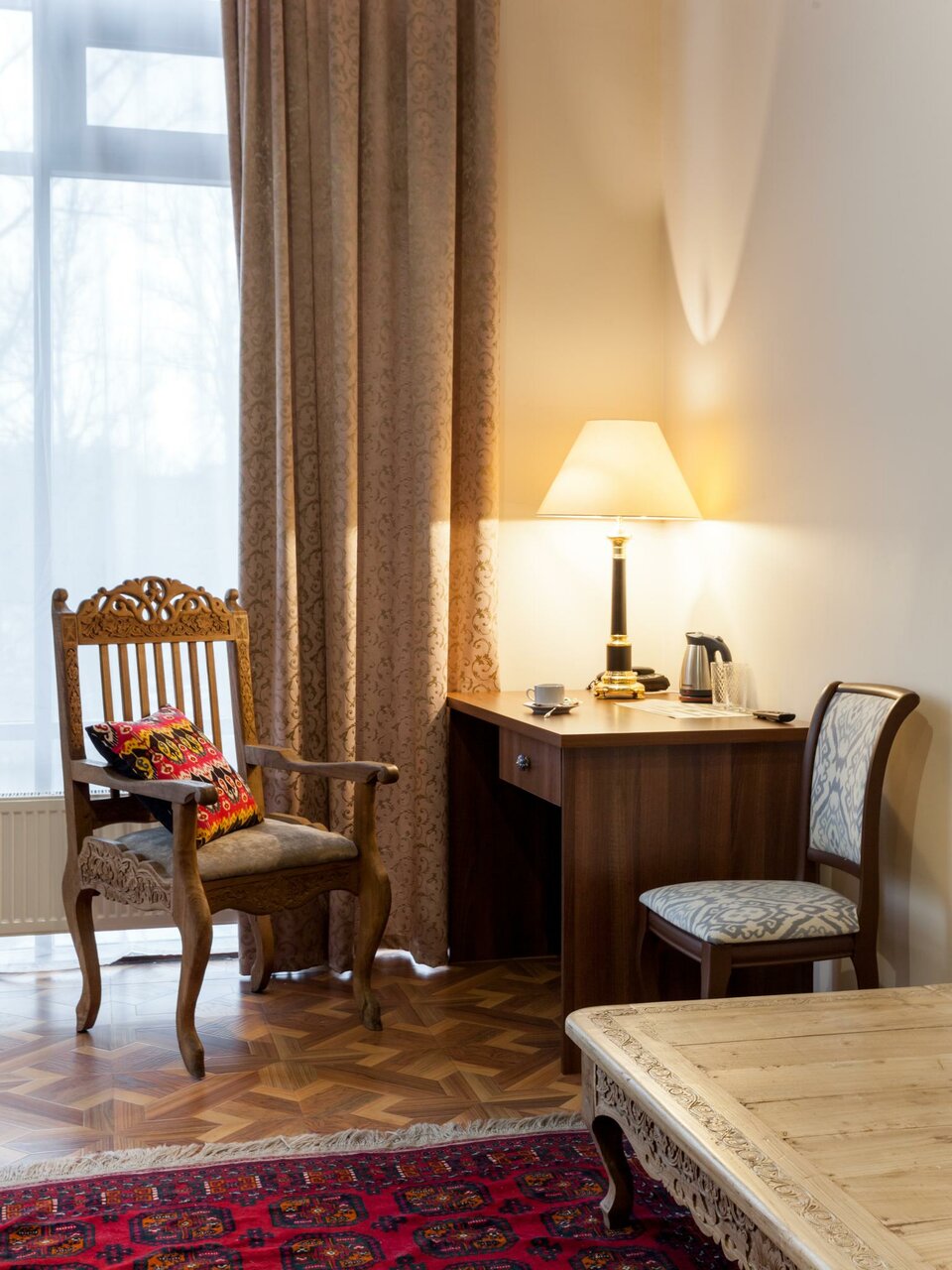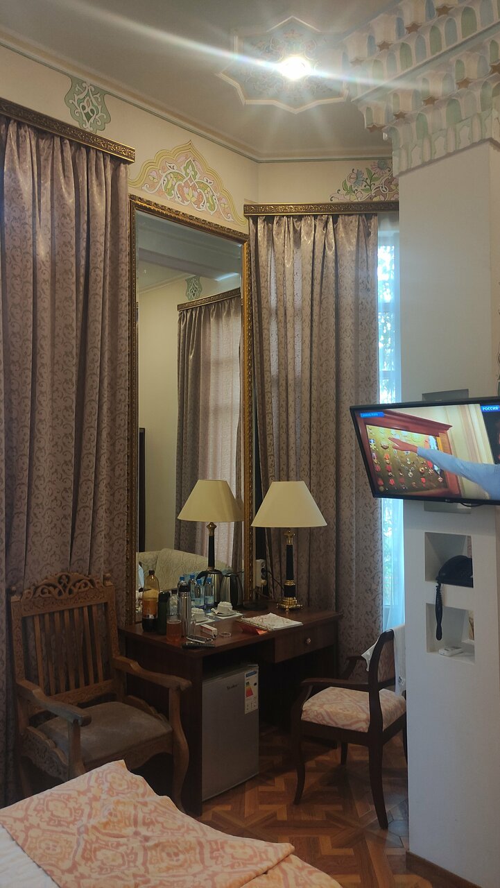 Очень приятный персонал. Гостиница чистая. Жили в дешевом эконом номере, вообще не разочаровались. Причём в жизни посещали и отели 5* и очень дорогие, есть с чем сравнить. Из-за праздников мест было мало где, а нам нужно было буквально провести вечер и ночь и уехать. Очень рада, что выбрали именно этот отель и не испугались 3* Самое здоровское — колорит! Везде безумно красиво. Особенно хочу отметить ресторан, невероятно красивый. Из плохого: завтраки. Да и то, не плохо, просто скудно. Но голодным не уйдёшь. Все, что готовили, было вкусно. Особенно советую попробовать горячие блюда из меню. Сама всегда сижу на диетах и жирное не ем, но этот ресторан и меня не оставил равнодушной