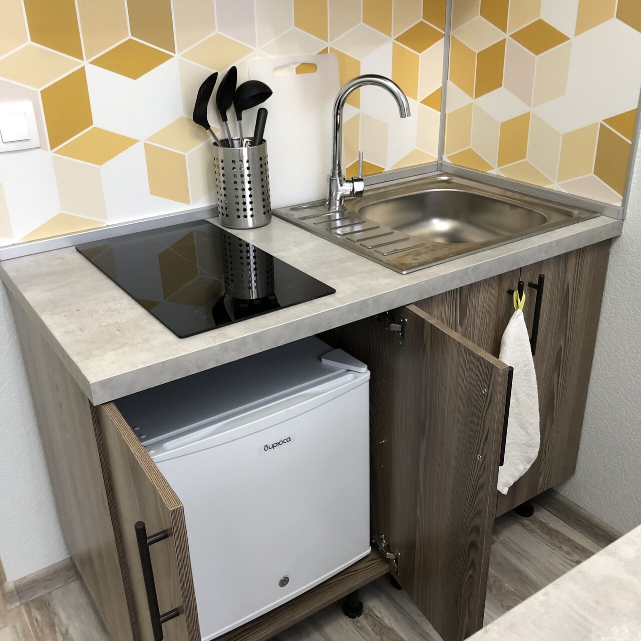 - Новая мебель и необходимая техника (чайник, микроволновка, фен, утюг).