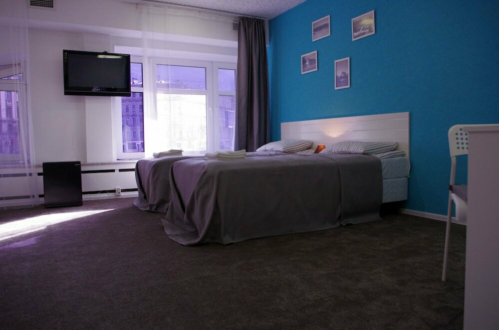 Хорошие номера за эконом стоимость. Чистые. Вид на Карповка прекрасен. Огромный минус-поздний выезд за полную стоимость дня, а вещи можно оставить только до 17:00. Очень неудобно при ночном вылете. И непонятно почему администрация предпочитает держать номер пустым пол дня, нежели взять 50 стоимости и пойти навстречу клиенту.