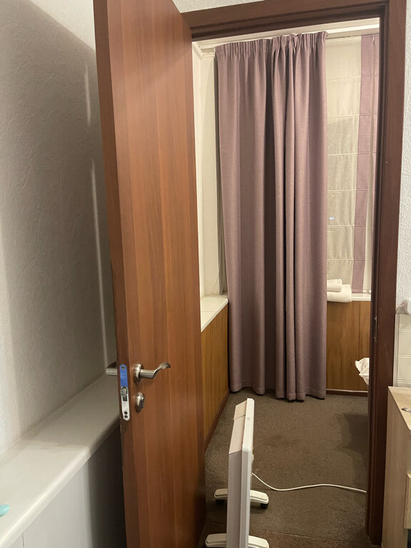 Лабиринт до номера. В номере грязно. На троих было две пары тапочек, третьи обещали, но не принесли. В душевой был шампунь не было геля, вода не уходила нормально, крепление только для взрослых, крепление для туалетки отваливалось. Рецепшен в субботу не работал, на звонки не отвечали, двери не открывали. На двухспальной кровати односпальное одеяло и простынь. Ладно, устал писать, есть ещё. Плюсы: расположение, шторы блекаут, было тихо, встретили в поздний заезд.