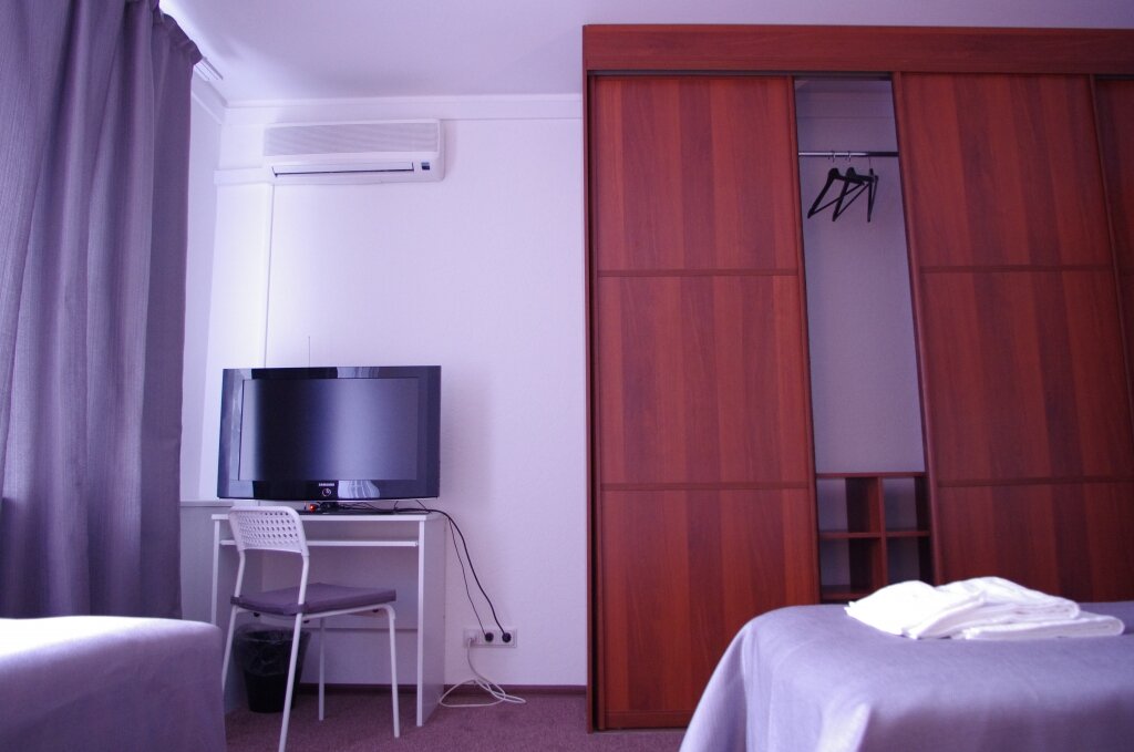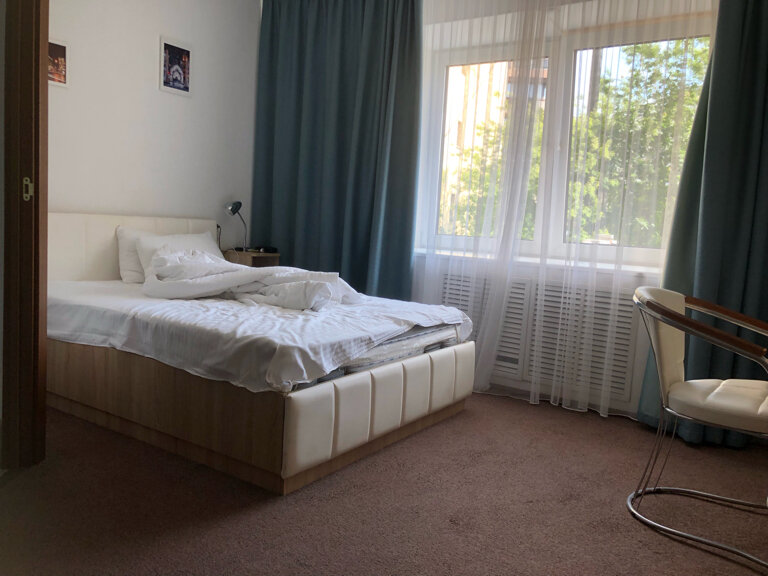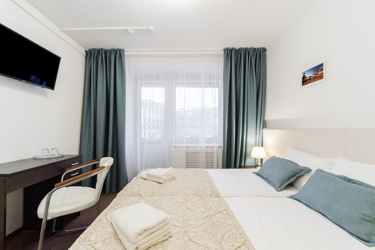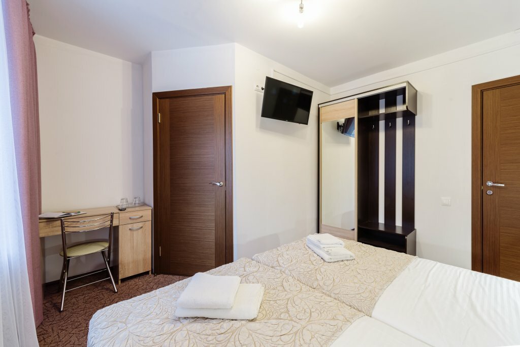 Цена: от 3300 рублейСтандартный однокомнатный номер с двумя раздельными односпальными кроватями(90*200) или с одной двуспальной (180*200) и кресло (раскладывается для 1-го человека).Площадь номера - до 27 кв.м., рассчитан на 1-3 человек.