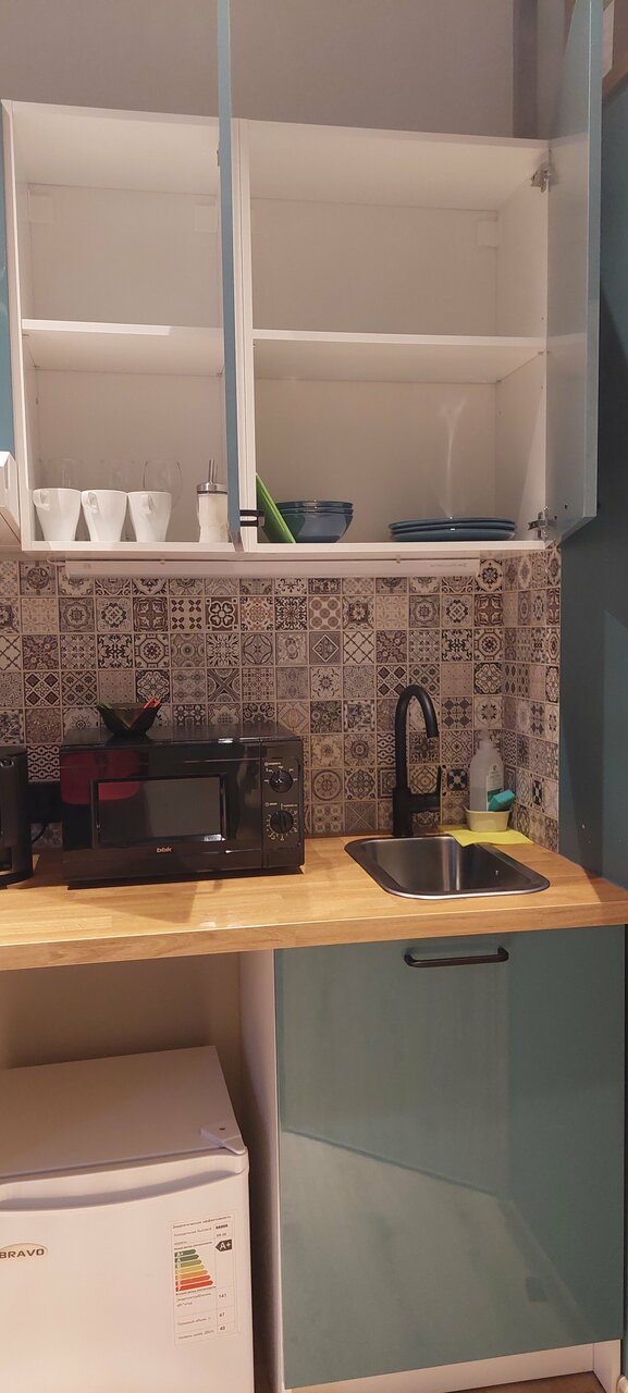 Номер чистый, выглядит как заявлено. Уборка каждый день. Есть инвентарь для готовки, сантехника свежая. Расположение идеальное, рядом куча достопримечательностей.
