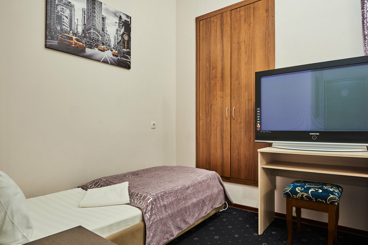 В номере очень душно, есть маленькое окошко, но постоянно открывать его не получается, потому что окна выходят на людную улицу и много шума. Нам принесли маленький настольный вентилятор, который также шумел по ночам и не особо помогл. В душе была плесень, что тоже неприятно. Самое неприятное — грубость персонала. С нами спорили, поучали и все в этом роде. Также отказались регистрировать моего мужа в миграционной службе ( он иностранный гражданин) хотя это обязанность отелей по закону рф, пришлось регистрировать самостоятельно. Сказали, что мол иностранцев они не принимают, хотя об этом нигде не написано. Короче, больше никогда.