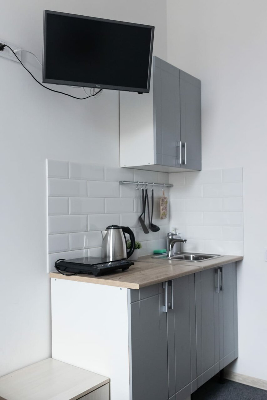 Удобства: кондиционер, Wi-Fi, санузел, холодильник, телевизор, звукоизоляция, гипоаллергенные и некурящие номера. Доступны кухонные уголки, общая кухня, чай/кофе в номерах, фен, халаты, тапочки, сейф.