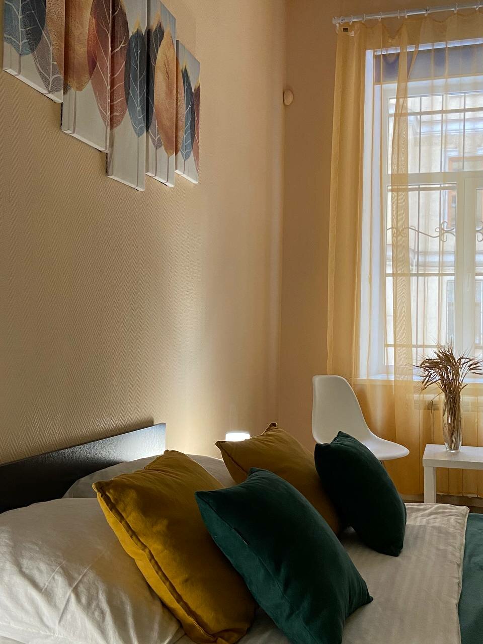 Отличная альтернатива хостела, если путешествуете вдвоем(троем), в комнате хорошая большая кровать на которой отлично спится (тихий двор и жалюзи этому тоже способствуют)., есть креслокровать если необходимо больше спальных мест. Шкаф. И всякое по мелочи. Никаких насекомых замечено не было, а у нас на это пунктик., когда ехали, пугали клопами в городе, но тут все чисто!) Душ 1 но очереди не было ни разу) Кухни нет. Зато в коридоре есть кухонные штучки холодильник., чайник., микроволновка. Может еще что-то, но мы не заглядывали. Куча кафе рядом, позволяет не переживать о готовке. Расположение максимально удобное, все в пешей доступности, или можно дойти до метро и уехать куда нужно. Цена качество соответствует 🙂