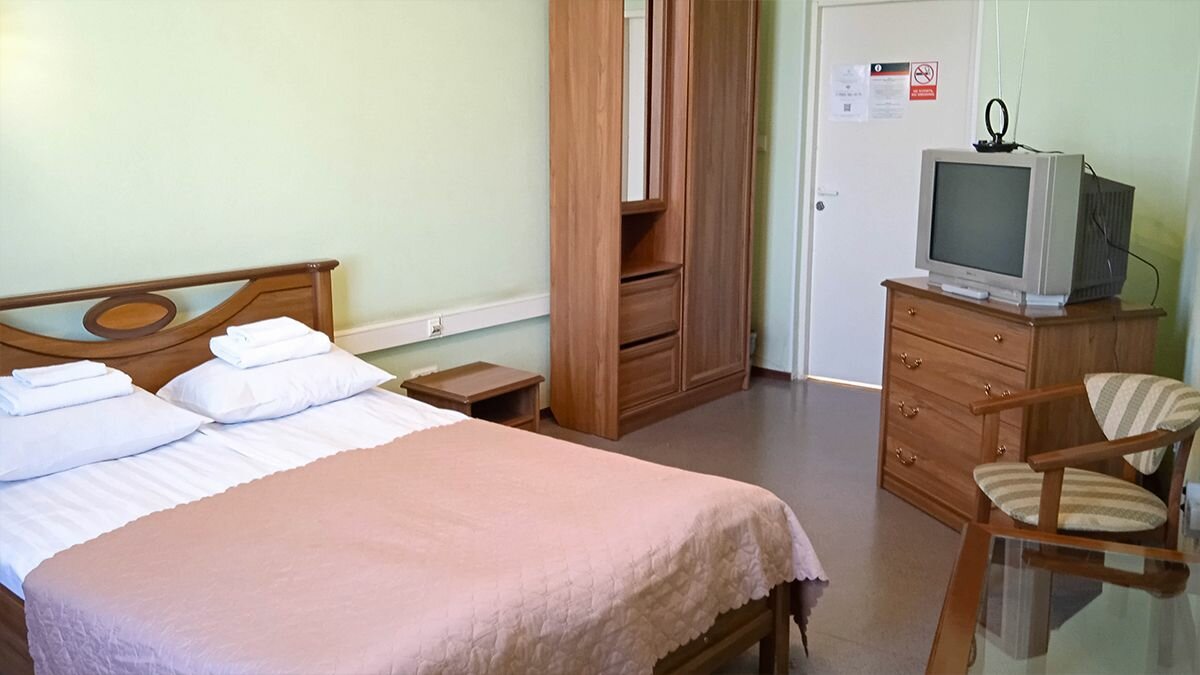 Номер не плохой, уютный, есть рабочий телевизор. Неудобно что в номере одна разетка, которая неудобно расположена. Вежливый, приятный обслуживающий персонал