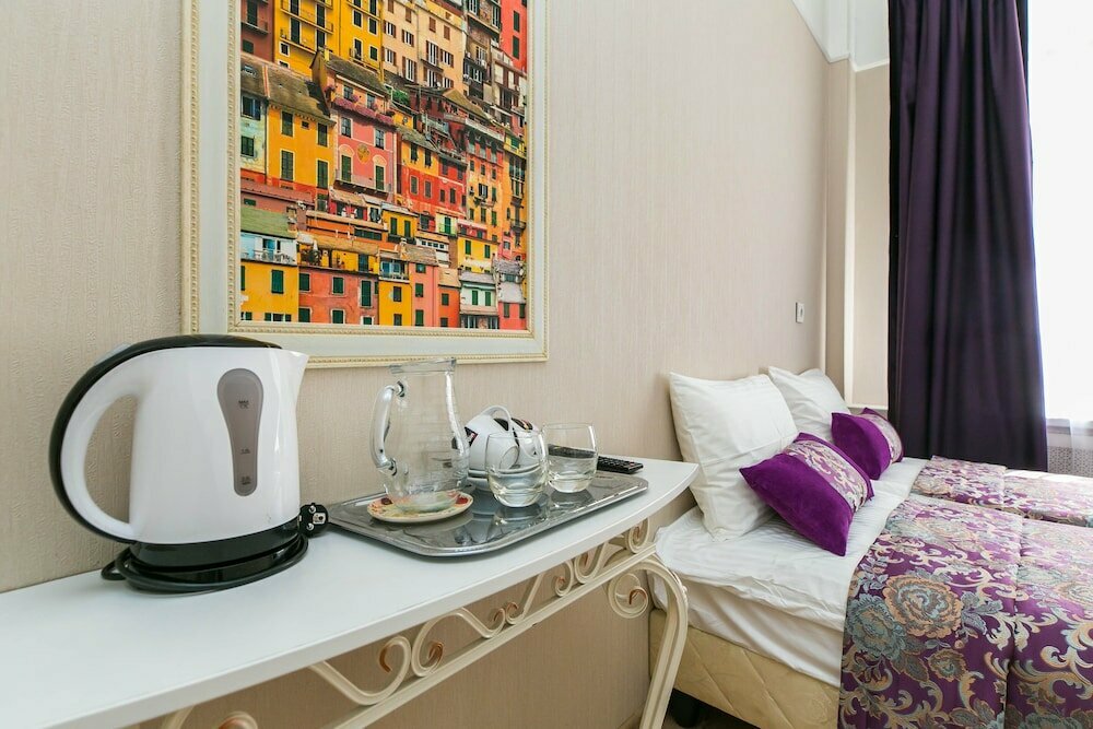 Отличный отель, всё чётко, без лишних разговоров. Есть небольшая кухня. Бельё белое, чистое, аж хрустит) есть шампуни и гель для душа, горячая вода, чайник и чашки с ложечками. Впечатление от отеля только положительные. Единственное, слышимость повышенная, сосед храпел, как не в себя) но это проблема многих гостиниц и отелей. Расположен отель удобно, в любую сторону есть магазины, кафе, достопримечательности.