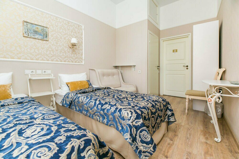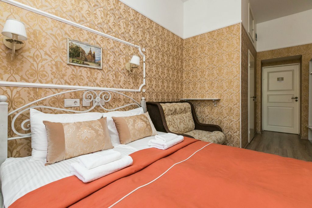 Площадь - 16 кв. м.Номер с одной двуспальной кроватью, либо с двумя односпальными кроватями.Окна выходят либо на внутренний двор, либо на набережную канала Грибоедова.Отремонтированные номера оснащены всеми удобствами, включая бесплатный Wi-Fi
