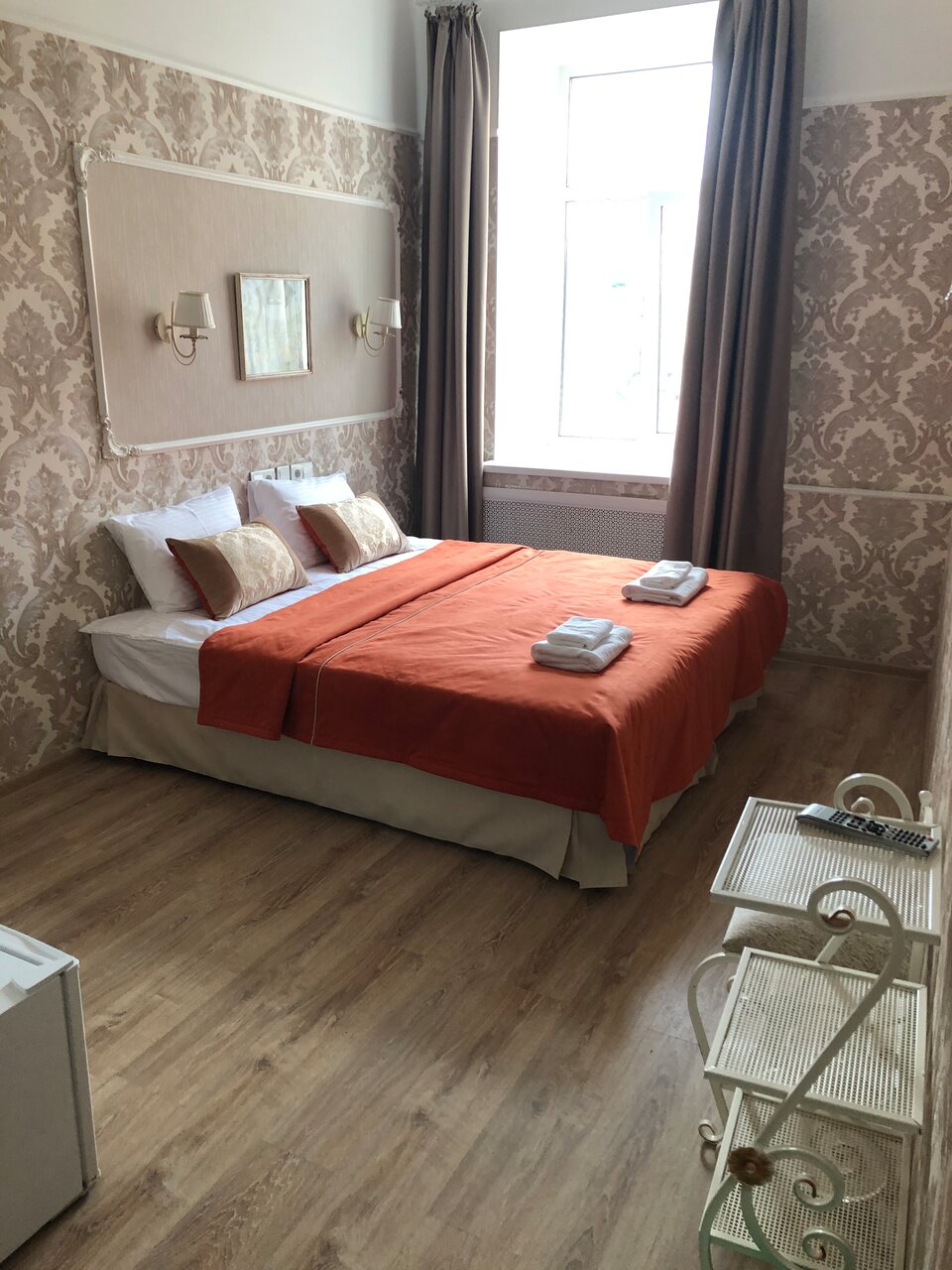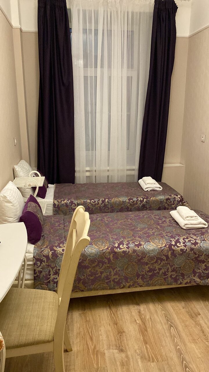 Мини отпуск в Питер был спонтанным и быстрым. Взор упал на этот. Приехали в 6 утра, управляющий Константин ( очень внимательный и доброжелательный) нас встретил, оформил, мы оставили вещи и пошли гулять. Номер чистый, тёплый. Две удобные кровати, полотенца по 2 шт, одноразовые тапочки, холодильник, телевизор, чайник в номере, шампунь и гель для душа. Чистый туалет и душевая. Хорошо оборудованная кухня со всем необходимым! Всего 5 номеров! До Казанского собора 5 минут! Мы ещё вернёмся! Рекомендую всем!