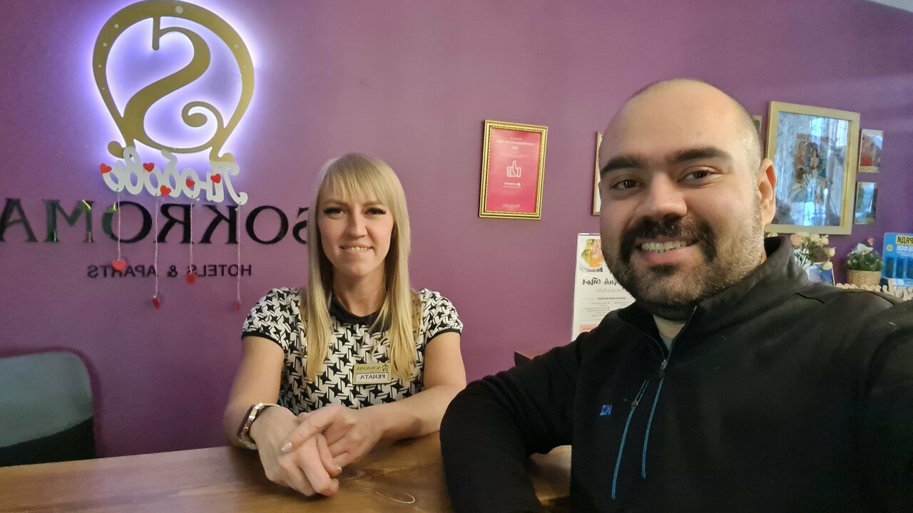 Была в этом отеле не долго всего 3 дня , Администраторы очень приветливые девушки добрые, все показали рассказали, Проводили в номер , номер очень большой уютный , 2 кровати телевизор кухня посуда в общем все отлично , просторная комната туалет душевая кабина чистые полотенца, единственный минус фен сломанный, Ну и интерьер можно обновить а в целом все супер очень рекомендую и цены не кусачие