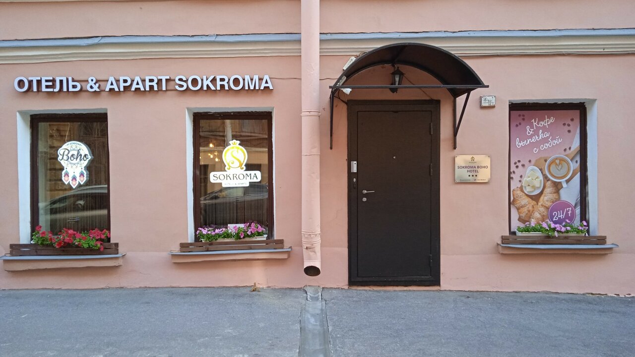 Sokroma Boho — дизайн-отель и апартотель в центре Санкт-Петербурга, расположенный на Средней Подьяческой улице, 4. Открыт круглосуточно, предлагает комфортные номера с кондиционером, Wi-Fi, телевизором и санузлом. Гости могут выбрать питание: от завтрака до полного пансиона. В отеле есть общая кухня, прачечная, камера хранения и парковка. Подходит для семей: доступны детские кровати и игровая комната. После реконструкции 2023 года обновлённый интерьер сочетает богемный стиль с современным комфортом. До центра — менее 2 км, рядом парк. Заезд с 14:00, выезд до 12:00.