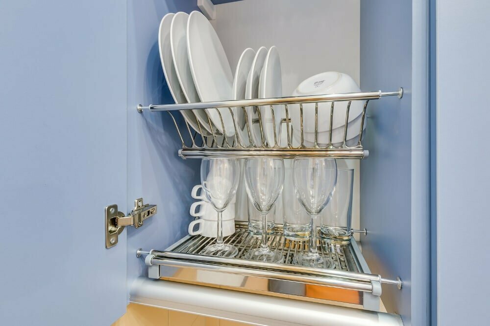 - Полная оснащённость (фен, отпариватель, сушилка, кухонная техника).; Комфортное проживание (удобная кровать, отличный душ, стиральная машина).; Всё необходимое в номере, удобства на высоком уровне.; Приятный современный стиль, чистая ванная комната.; Доброжелательный и отзывчивый персонал.