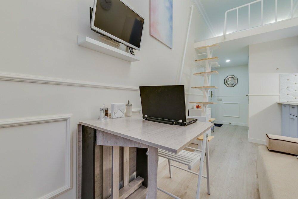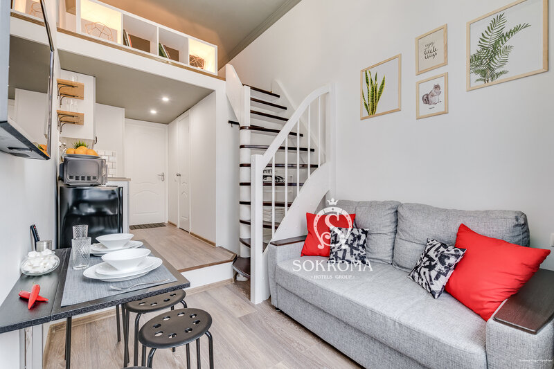 Хорошее уютное место, очень благодарим за гостеприимство. Из плюсов: -классное расположение, удобно добираться, близко до метро -есть рядом магазины, буше, приятно прогуляться -уютно в самих апартаментах, милые цвета, -красивый вид на улицу -есть все необходимое, включая чайник, утюг, фен -если нужно, можно заказать завтрак. Из минусов: -очень маленькая, ну прям даже руки не распрямишь -второй этаж как 1/4 этажа, я бы не стала говорить, что это двухуровневая конструкция. Это 1 этаж и маленькое дополнение))) -тонкие стены! Самая огромная проблема, мы не спали не одну ночь))) слышимость 100% Господи!! Ну невыносимо))) -не работал вентилятор, а когда включали вентилятор соседи, к нам летела пыль) как результат, было супер душно, мы открывали окно. Внизу холодно(дубак), зато воздух был. Какой вывод, нам это отдых не испортило, но тяжеловато не спать 6 дней))) лучше на жилье не экономить))
