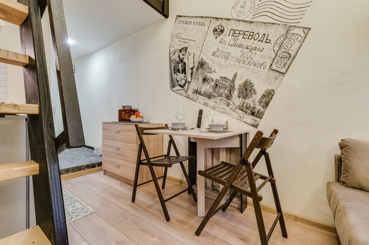 Здесь мы провели неделю и остались очень довольны. Дом, в котором находятся апарты, имеет богатую историю, и это чувствуется в каждой детали интерьера. Двухуровневые студии с удобной кухней и уютной спальней идеально подходят для длительного проживания. Гостеприимство и внимание к деталям , все на высшем уровне. В шаговой доступности – метро, рестораны на улице Рубинштейна и многие достопримечательности Петербурга.