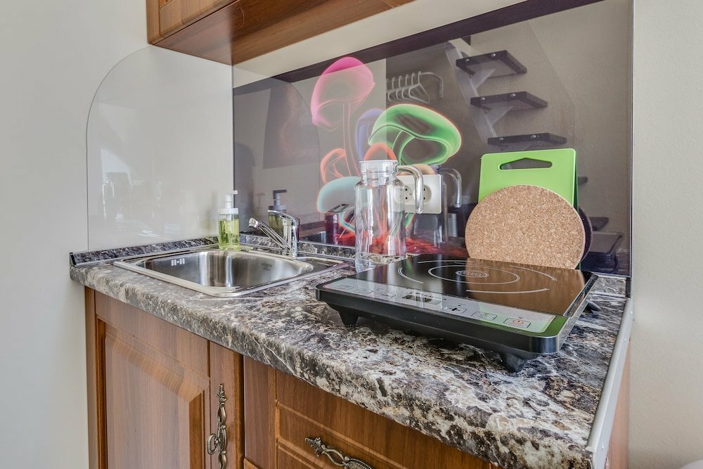 - Наличие кухни и необходимой техники (плита, микроволновка, кофеварка, чайник).