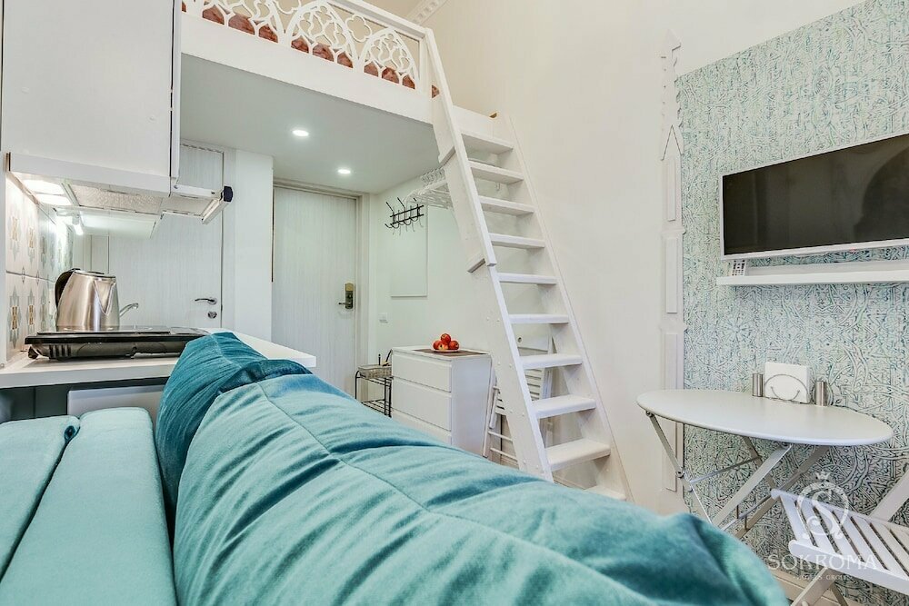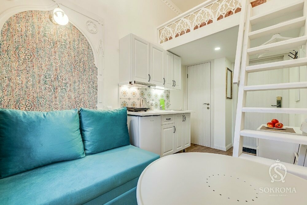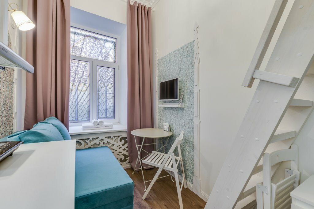 Маленький уютный номер, спать на верху было душновато, но и на улице была парилка. Очень понравилось, что в апартаментах идеально чисто, всё продезинфицированно. Идеально белое постельное бельё, отличный матрас. Интерьер особенно радовал глаз. В общем пользовании стиральная машина, пользовались один раз короткой программой 30 мин-удобно и быстро! Минусом, что никаких гелей для душа, шампуней и т. д. не было. Дополнительной растратой стала общегородская парковка 100 р в час с 8-20:00, остальное время бесплатно, в карточке гостиницы не указано какая парковка имеется. Четыре звезды за стоимость, субъективное мнение, рынок по Питеру не изучала, по своим ощущениям и сравнениям дороговато, хоть и в центре города, Но скорее всего в следующий раз тоже выберем это жильё, но уже учитывая нюансы.