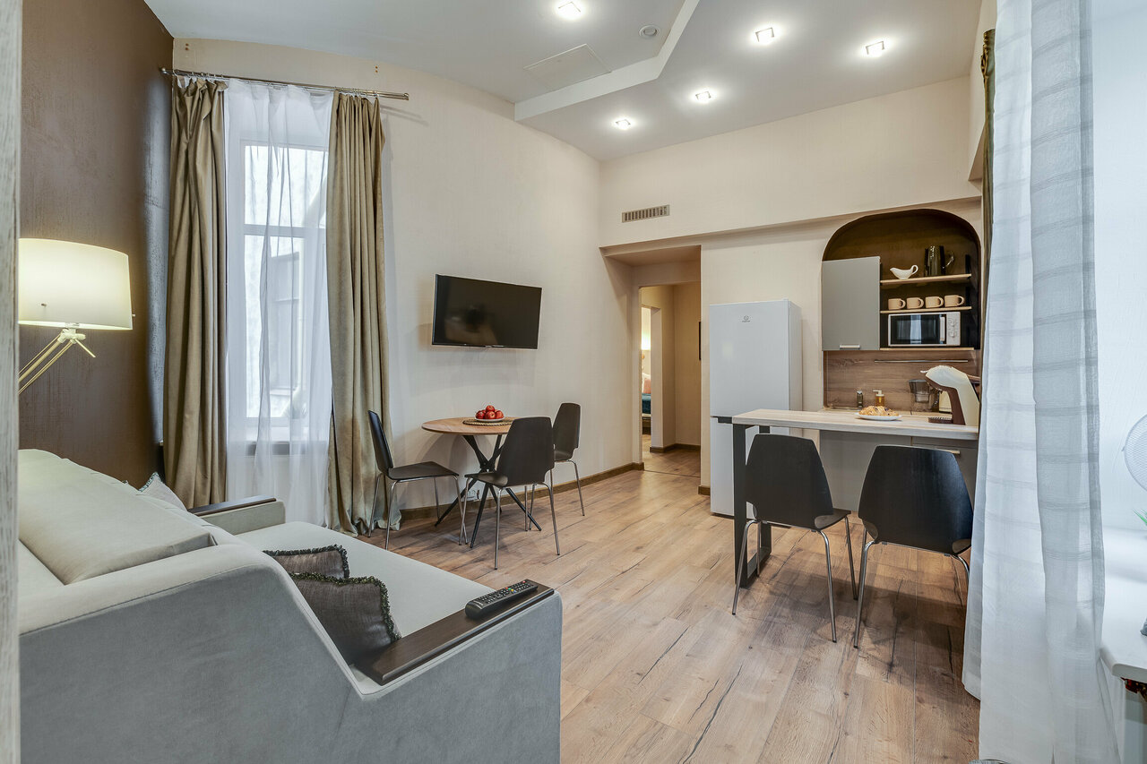 Отличный вариант для тех, кто приезжает в Петербург на поезде — от Московского вокзала до апартаментов буквально 10 минут пешком. Очень тихо, несмотря на близость к Невскому проспекту. Номер был чистый, комфортный, особенно порадовало наличие кухни и всего необходимого для готовки. Буду рекомендовать!