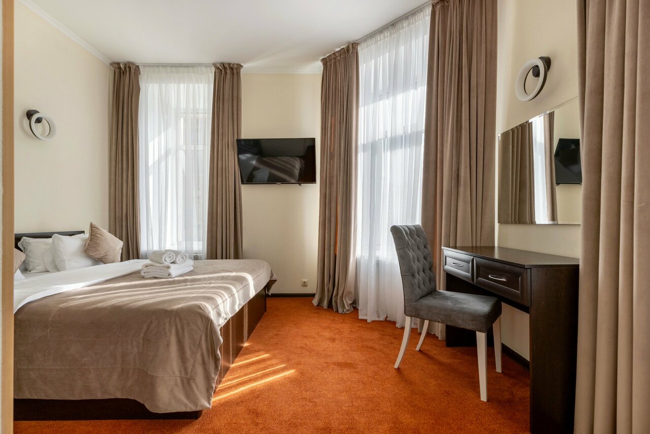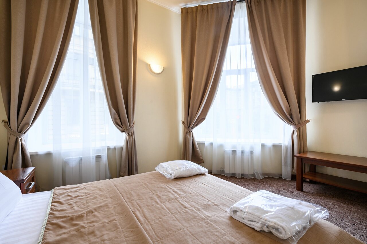 Проживали в данном отеле с 1 по 6 августа 2022г. Отель находиться в минутах 15 от метро Петроградская, спокойным ходом. Жили на 3 этаже в 2 местной комнате. Отель нормальный для не капризных людей, Можно остановиться на 2-3 дня, не больше. В комнате шкаф, стол, стул, телевизор, холодильник , тумбы прикроватные. Есть кондиционер, но очень не понятно работает, дует кое как. При открытом окне очень шумно, вечером гоняют машины, а утром общественный транспорт. Очень неудобно что нет никаких вешалок -крючков в ванной и при входе, Входишь элементарно некуда поставить сумку, а в ванной повесить одежду перед душем. Завтраки континентальные , голодом не останешься, но почему то не сильно сбалансированные.