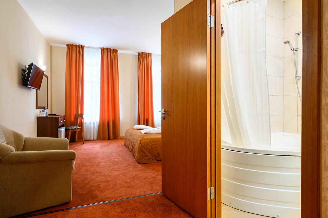 Была в Питере первый раз, выбрала эту гостиницу по цене и месторасположению — надалеко от места проведения семинара. Номер 22 рядом с ресепшен, с видом на проспект. Шумновато и даже ночью — мы попали на белые ночи и на выпускные, но усталость решала проблемы и мы не обращали внимание. Были три дня, во второй день ближе к 8.30-9 в душе не было горячей воды. Связала это с тем, что возможно есть нагреватель и много желающих сразу. Я это пережила, но вообще то не очень комфортно когда нет выбора и нельзя подождать. Брали завтраки — хорошо упакованы и вкусные, можно кушать в номере, можно в столовой. Но завтраки приносят только к 8. В итоге на один я просто не успела, выезжала в 7.20. В целом персонал готов прийти на помощь и решить проблему, возможно есть платный ранний выезд — не уточняла. В номере был халат, фен, средства для душа. Тапочек не было. Но опять же я это спокойно пережила. Все чисто — убирались каждый день.
