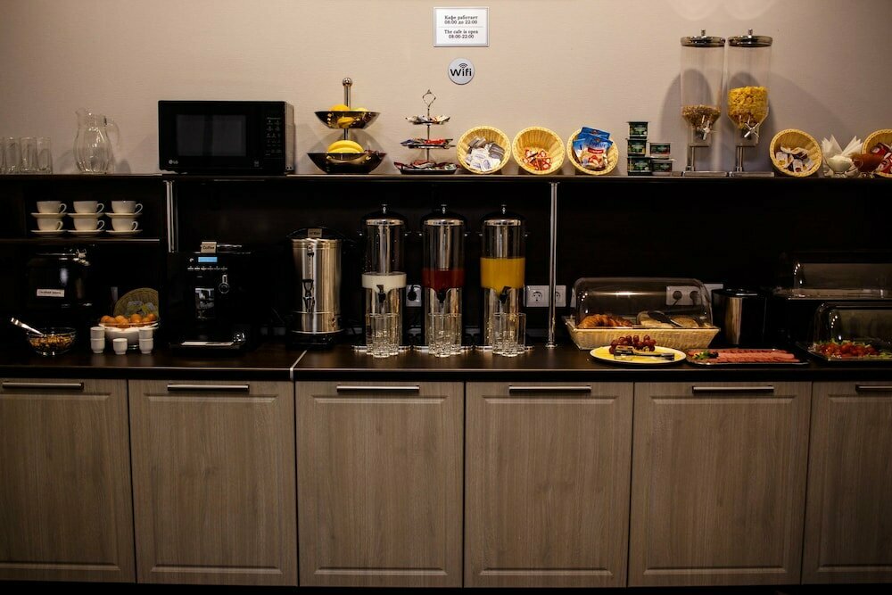 Прекрасный отель. Чисто, уютно. Персонал вежливый. В кафетерии безлимитный прекрасный кофе. В номерах есть все необходимое. Из минусов: тяжеловато найти с первого раза (на доме нагромождение вывесок других компаний) и сложность с заездом на парковку (нужно звонить каждый раз на рецепцию).