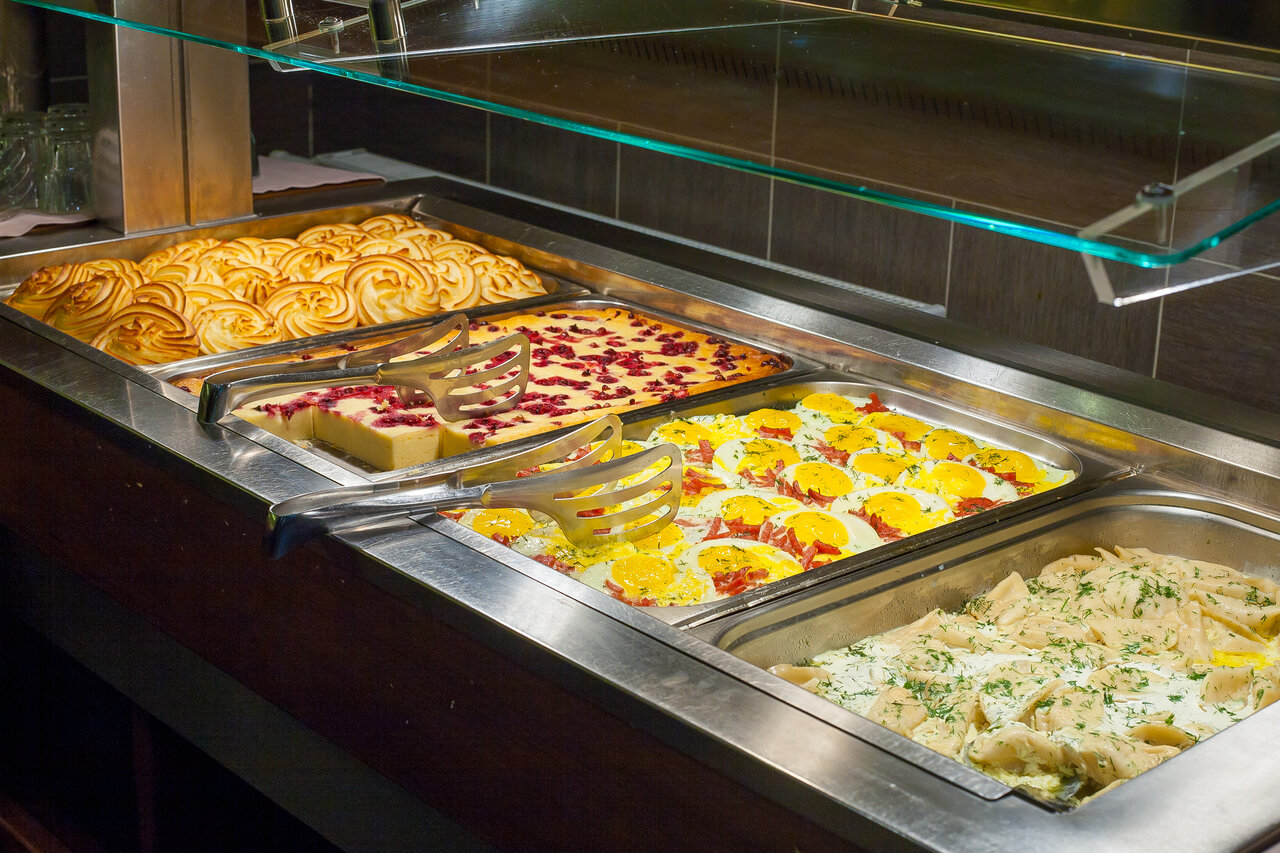 Каждое утро с 7:00 до 11:00 разнообразный шведский стол. Насладитесь вкусным, сытным и полезным завтраком!