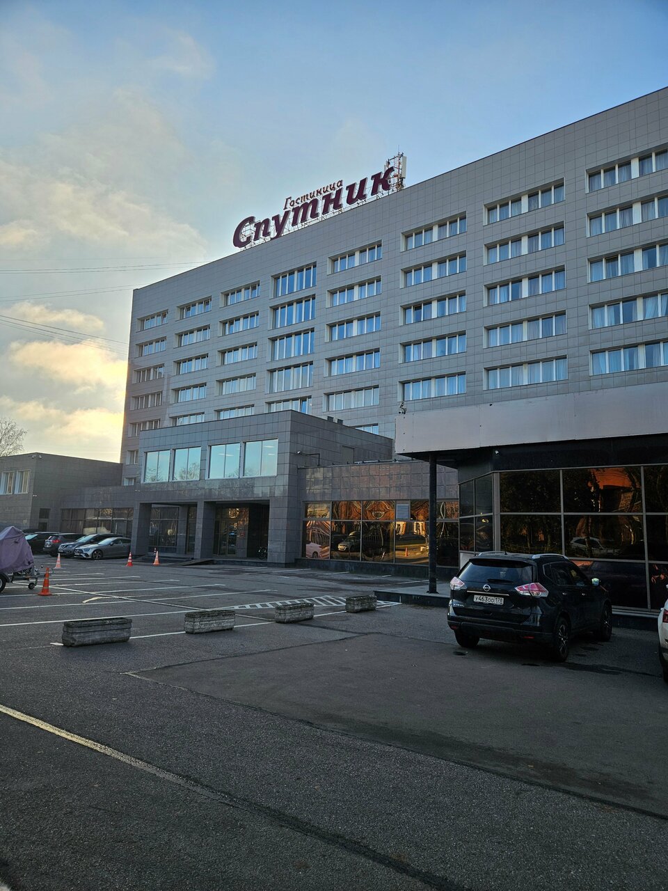 Останавливались в Спутнике в июне 2022. Разместили нас очень быстро. У нас был номер — студия . Номер удобный, состояние мебели, сантехники хорошее. В номере есть чайник, банные халаты, сейф. В стоимость номера входил завтрак по системе шведский стол. Завтрак хороший, разнообразный. Также в кафе можно пообедать и поужинать , заказать пиццу. В целом в гостинице нам понравилось, звезду снимаю за то, что из номера убрали кондиционер( следы его присутствуют), погода стояла жаркая и в номере было очень душно., а также за то, что при уборке номеров, которая состояла в основном в выносе мусора, не доклыдвали шампуни, чай, кофе ( изначально положили по 2 пакетика чая и кофе). Гостиница расположена в 10 мин ходьбы от метро, рядом есть магазины Магнит и Пятерочка.