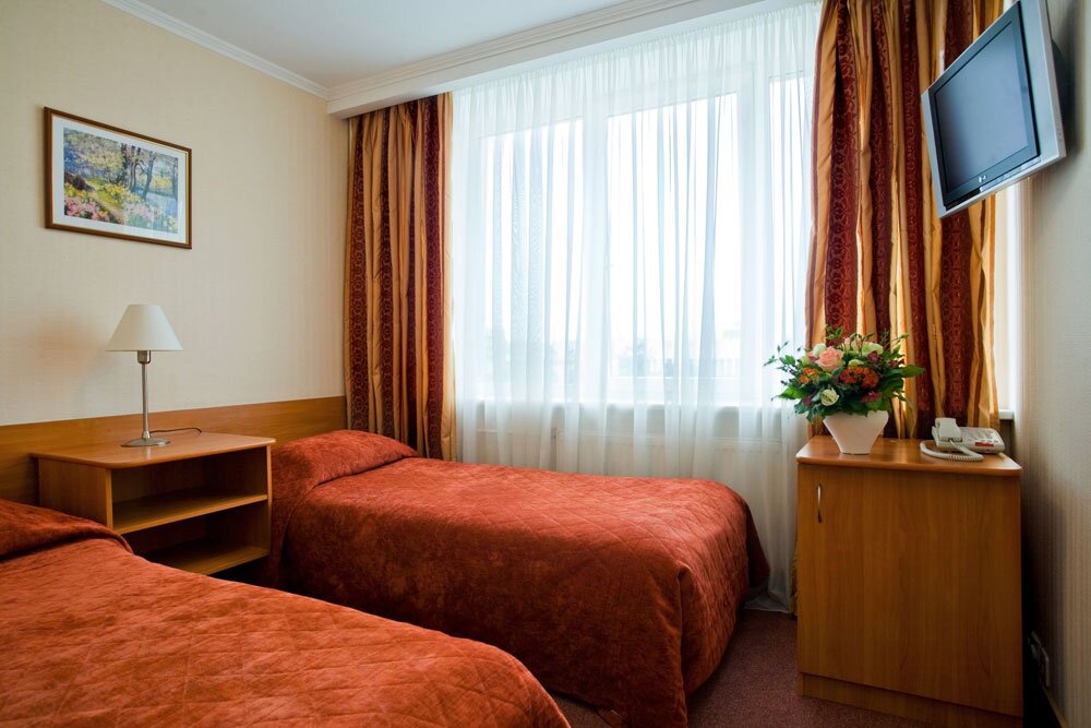 Отличная гостиница, хороший сервис, доброжелательный персонал, лояльных цены,приятный интерьер. Минусов практически нет. Питание замечательное, есть комплекс и можно заказать из меню. Минус один — до метро идти минут 10-15, но дорога хорошая. Не самый центр, но довольно быстро можно добраться. Для машин есть парковка