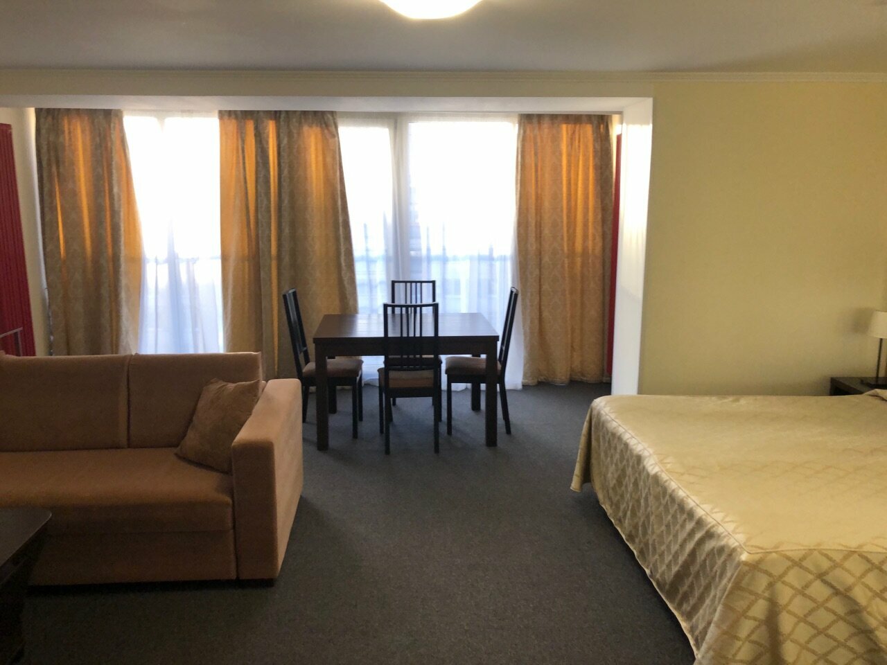 Были в августе, номер студия требует ремонта!!!! Запах в номере неприятный, прокуренный! Завтраки хорошие, на 4. Персонал невежливый, невнимательный! Кровать не удобная.