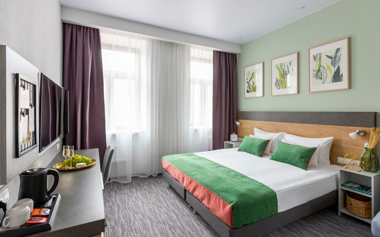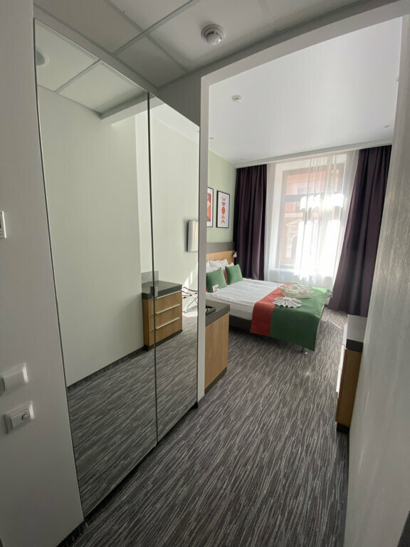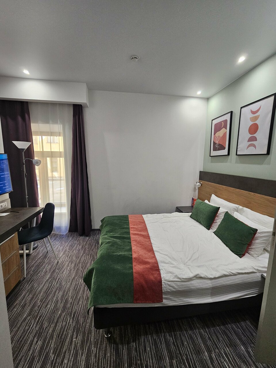 В этом отеле останавливались первый раз. Была акция на проживание за 3500 ночь на двоих с завтраками, хорошее предложение, поэтому решили съездить в Питер на 4 дня. Новый отель с хорошим ремонтом, номера отличные, санузел, ковролин, все красиво. Уборка каждый день, вода в бутылках, зубной набор, косметика, все пополнялось ежедневно. Завтраки неплохие, есть и сосиски и омлет. Каша для меня не подошла, была овсяная на воде и гречневая на молоке, предпочитаю наоборот. Кофемашина, вкусный кофе, разный. Из минусов, это вентиляция. Кондиционирование общее, но не охлаждало ни разу, хоть и есть регулятор. При включении что-то там бренчало, как крышка на кастрюле. Открывали окно. Но как только кто-то из соседей закуривал, все тянуло в номер, приходилось закрывать. Клубная карта отеля не работает. В ресторане Бир кениг на Гороховой и в Петровской акватории никакой скидки нет, как заявлено у отеля, там про это никто не знает.