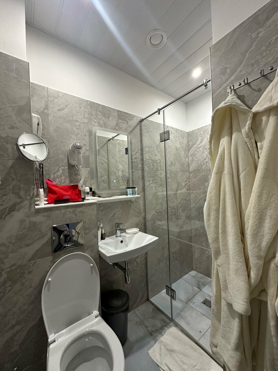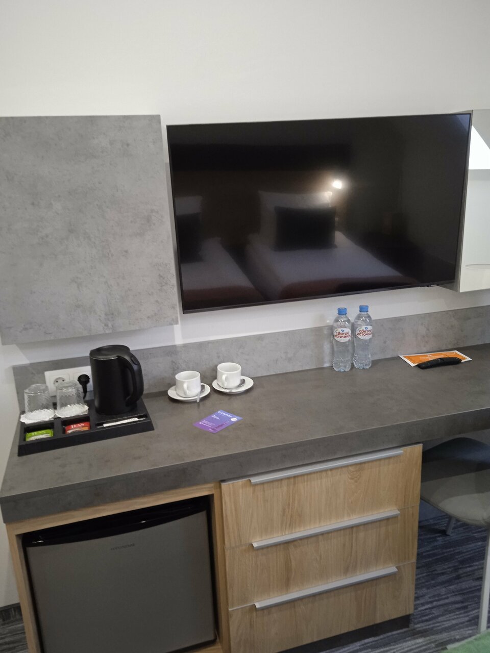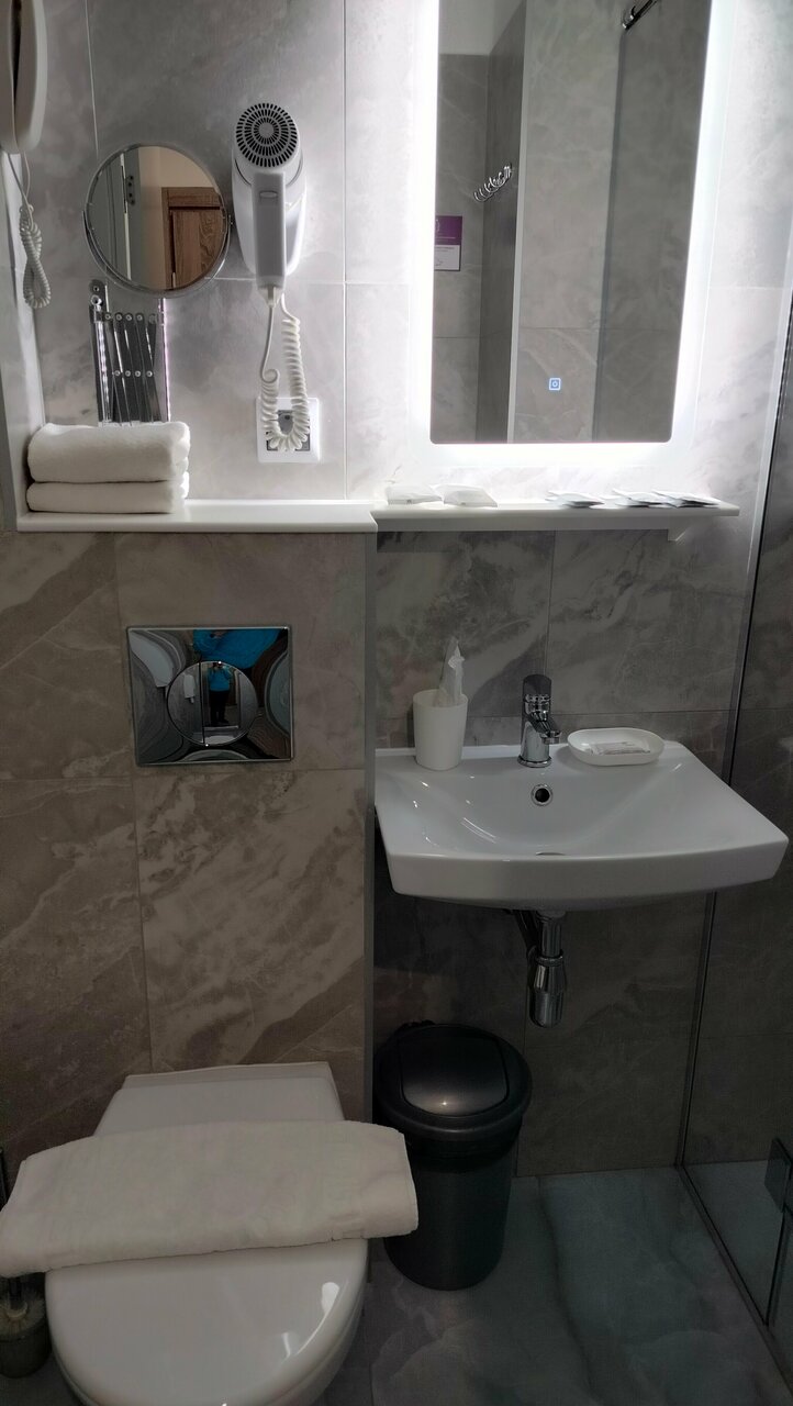 Отличный отель с хорошим расположением. Рядом метро, кафе, магазины. Номера светлые, аккуратные. В номере есть всё необходимое — ТВ,холодильник, чайник и чайные принадлежности, вода, халаты, тапочки. В ванной комнате есть мыло и другие средства гигиены. Завтрак шведский стол достаточно разнообразен. Всё вкусно. Персонал вежливый. Есть лифт, туалетные комнаты около рецепшн. Чай, кофе можно попить в любое время на цокольном этаже где проходят завтраки. Рекомендуем для посещения.