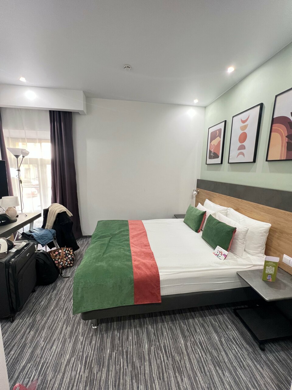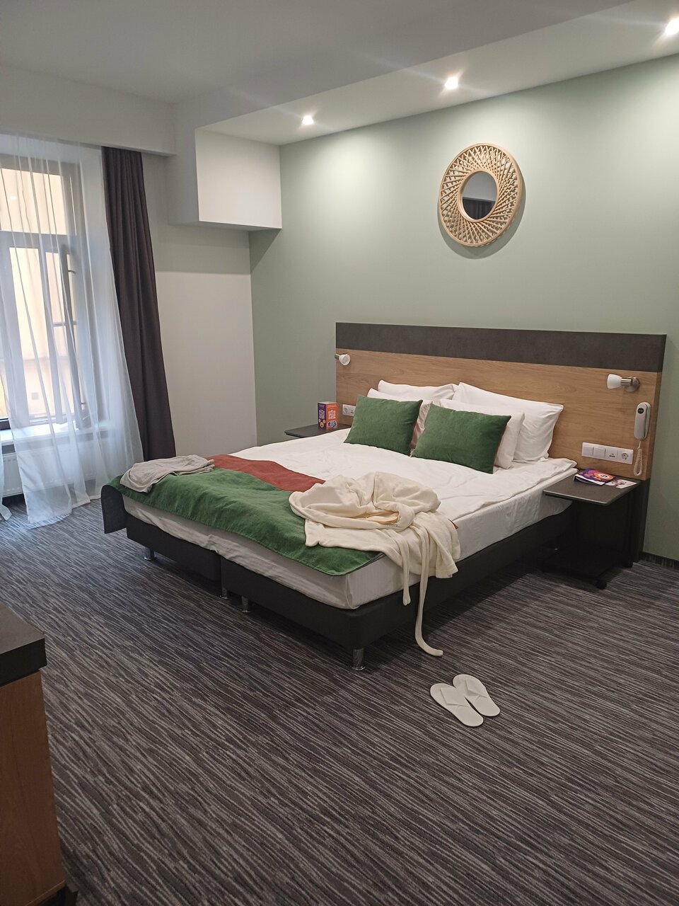 Начитавшись всякого, я была готова к худшему — но к этому моменту все более-менее адекватные варианты были заняты и я все-таки решилась. В целом, не зря. Отель достаточно новый со свежим ремонтом, прекрасным месторасположением. Есть все необходимое — всегда на связи приветливые сотрудники ресепшена. Из особенностей — лифт до 4 и если нужен номер на 5, то пешком. Вода только на первом и в цокольном обеденной зоны. Завтраки — шведский стол — они из примерно одного набора продуктов, но меня это вообще не смущало. Есть возможность заказать обед/ужин, но в целом в шаговой доступности есть много мест, где можно поесть.