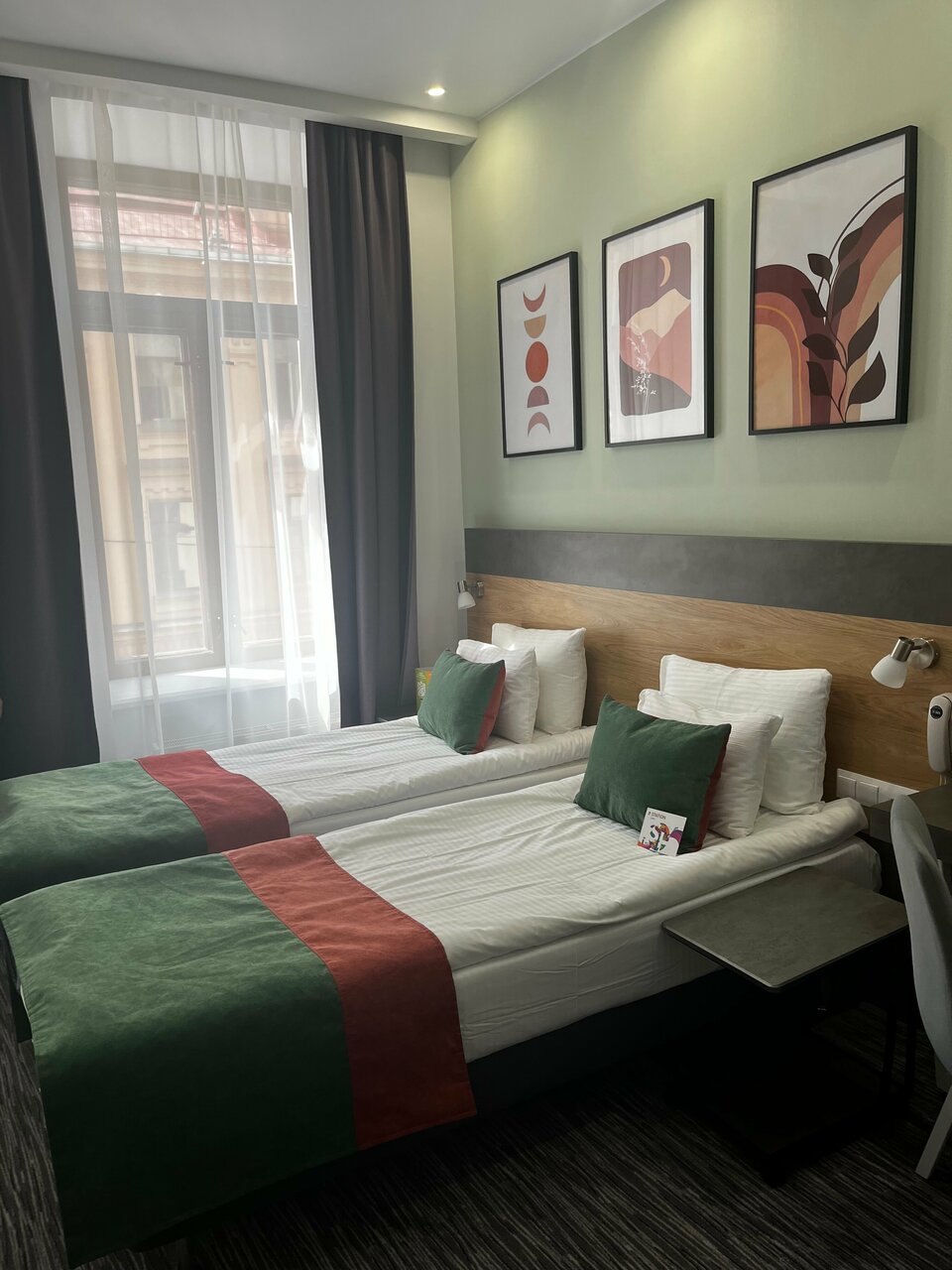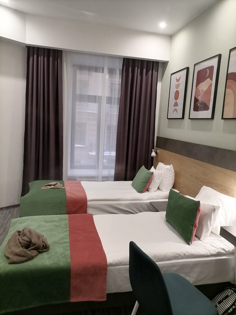 Номера чистые, удобные. Персонал вежливый. Расположение прекрасное — 10 минут до Сенной, 15 минут до Невского