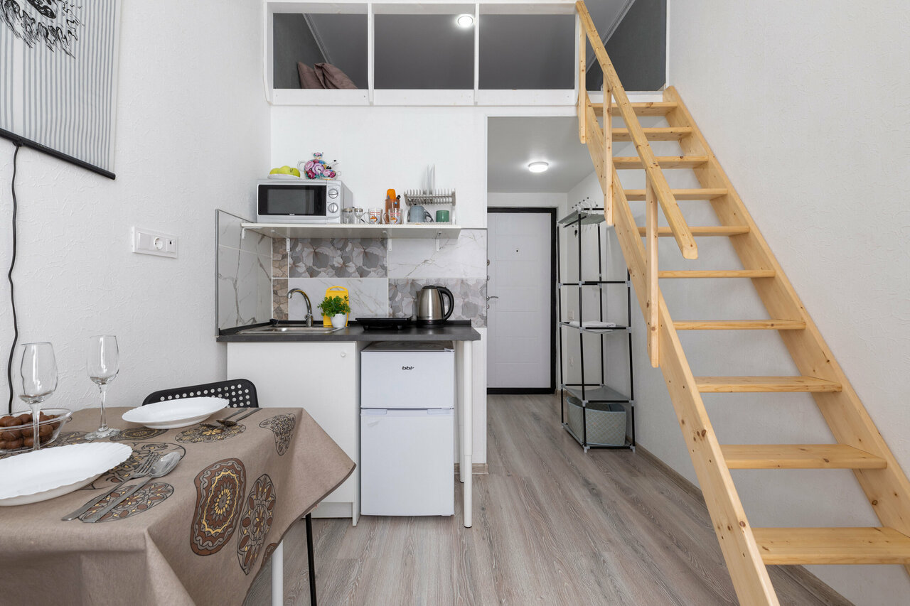 Маленькая уютная студия, для двоих самое то! В студии чистота и порядок, есть все необходимое для проживания. Удобное расположение в центре города. В шаговой доступности метро, магазины магнит и пятёрочка. Нам очень понравилось, спасибо!