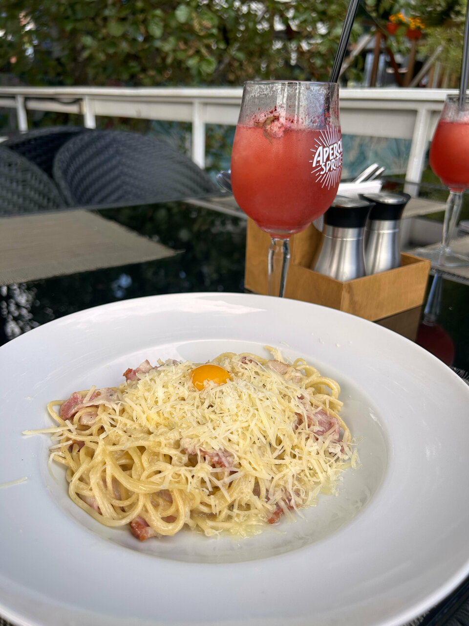 Давайте по порядку, началось всё сразу не очень хорошо. Бегинер-курс на двоих на вейкборд обойдется вам в 8 900 рублей за час тренировки с тренером. Начну по порядку, там просто своя бро-тусовка. Если в вас заметили новичка, то каждый должен усмехнуться, шепнуть что-то соседу, посмеяться у вас за спиной и обсудить вас в плане ну чего им тут надо. Но, наверно, нам повезло, так как пошел сильный дождь, а мы уже переоделись, и занятие отменили, а деньги, кстати, вернули! (респект). Свободное место на искусственной волне было только на 22 часа, так что идем ужинать. Нормальное обслуживание у воды. Официант улыбался, если что-то не услышал, то переспрашивал, соблюл очередность блюд, все уточнил. Получил чаевые, не имею никаких вопросов. ЗАВТРАК на последней фотографии. Просто без лишних слов взгляните на завтрак, я от себя ничего не добавлю. Завтрак с 8 до 11, мы пришли в 9.