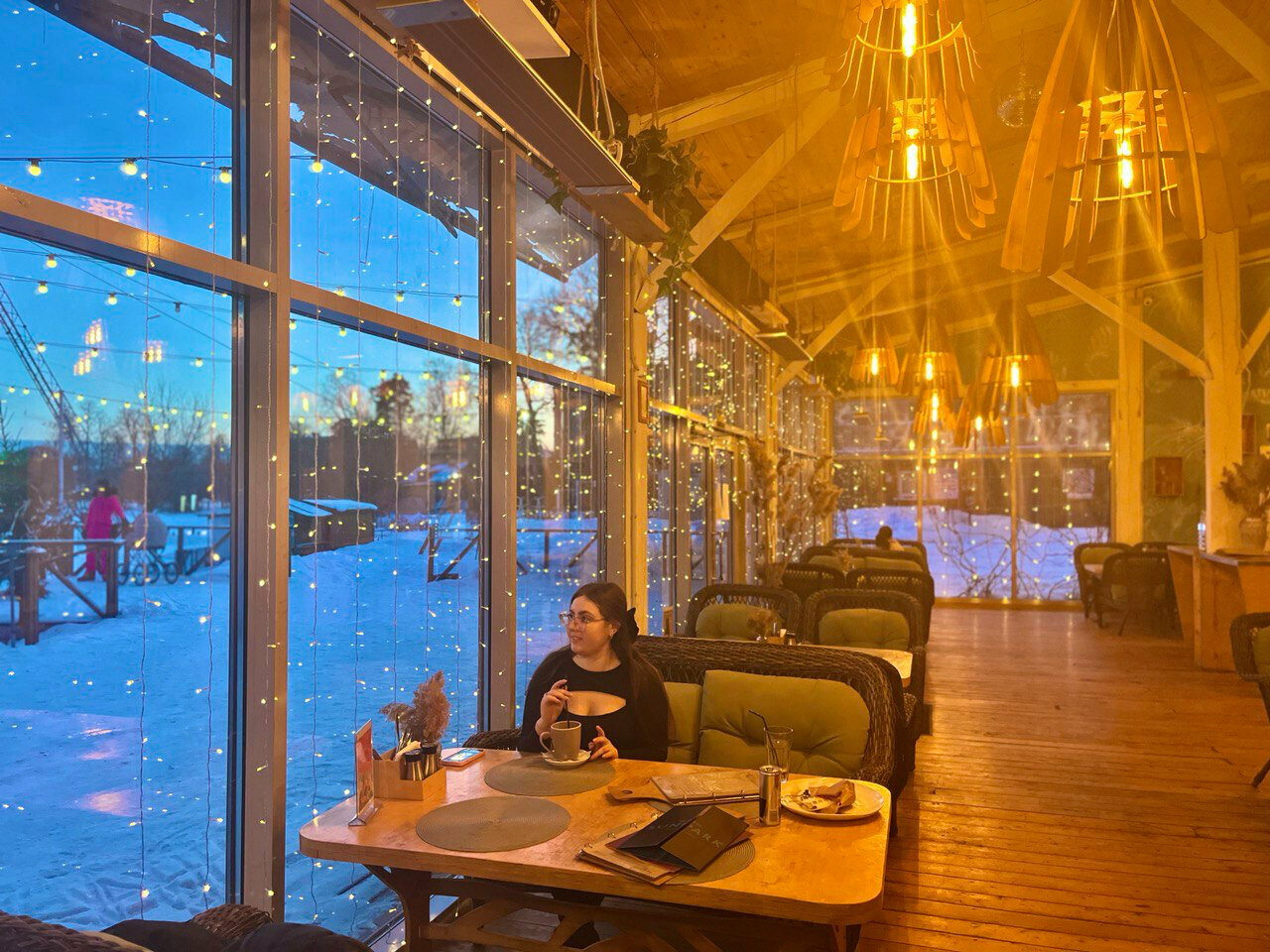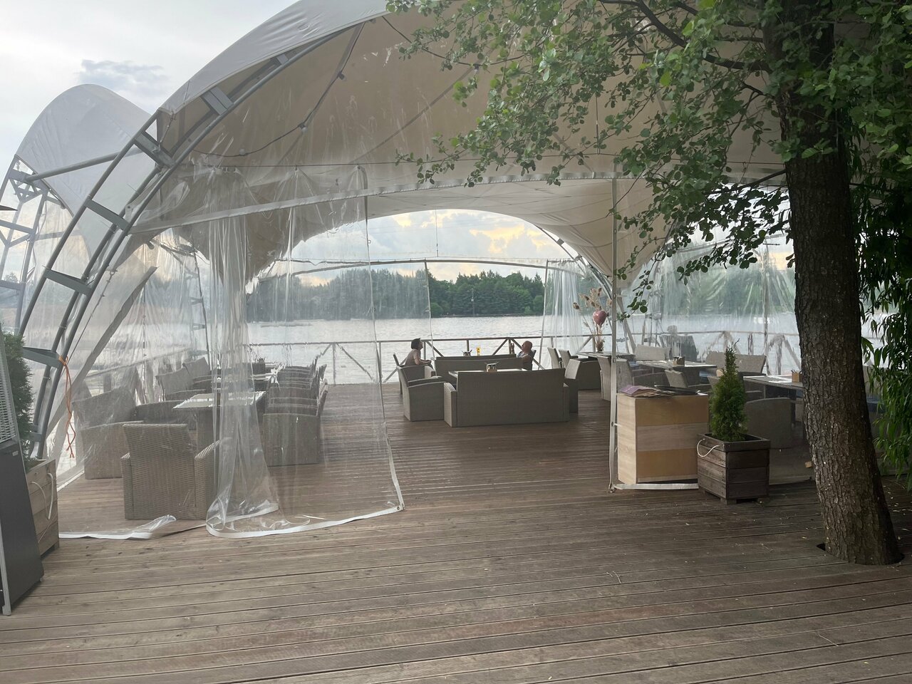 Суперуютное место.Единственное место в городе,где в ресторане не орет музыка,перед входом озеро(потрясающий вид!) и просто полная умиротворенность,а не проходной двор…Кстати,если нужно провести встречу или деловые переговоры за рюмкой чая-просто идеальное место!!!
