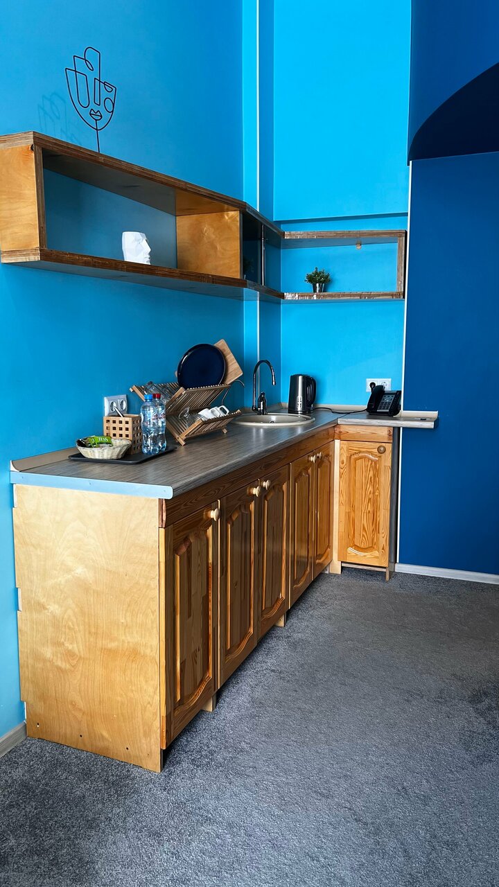 В каждом номере:Кухня для приготовления легкой пищи, электроплитка, микроволновка, набор посуды и кухонных принадлежностей,кровати - 1 двухспальная и 2 односпальныемягкий уголок;шкаф-купе;стол, стулья;телевизор (спутниковое TV);холоди