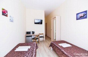 СуперХостел — гостевой дом и мини-отель в Санкт-Петербурге, расположенный по адресу: 1-я Советская улица, 12, подъезд 2. Работает круглосуточно, предлагая номера с санузлом, звукоизоляцией, Wi-Fi, телевизором и кухонными удобствами (чайник, микроволновка, холодильник). Стоимость проживания — от 4000 до 6000 ₽ за ночь.