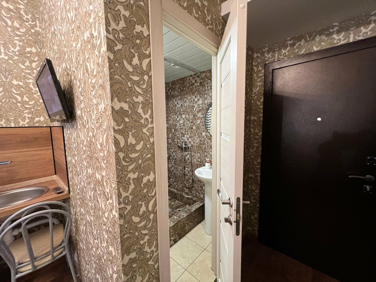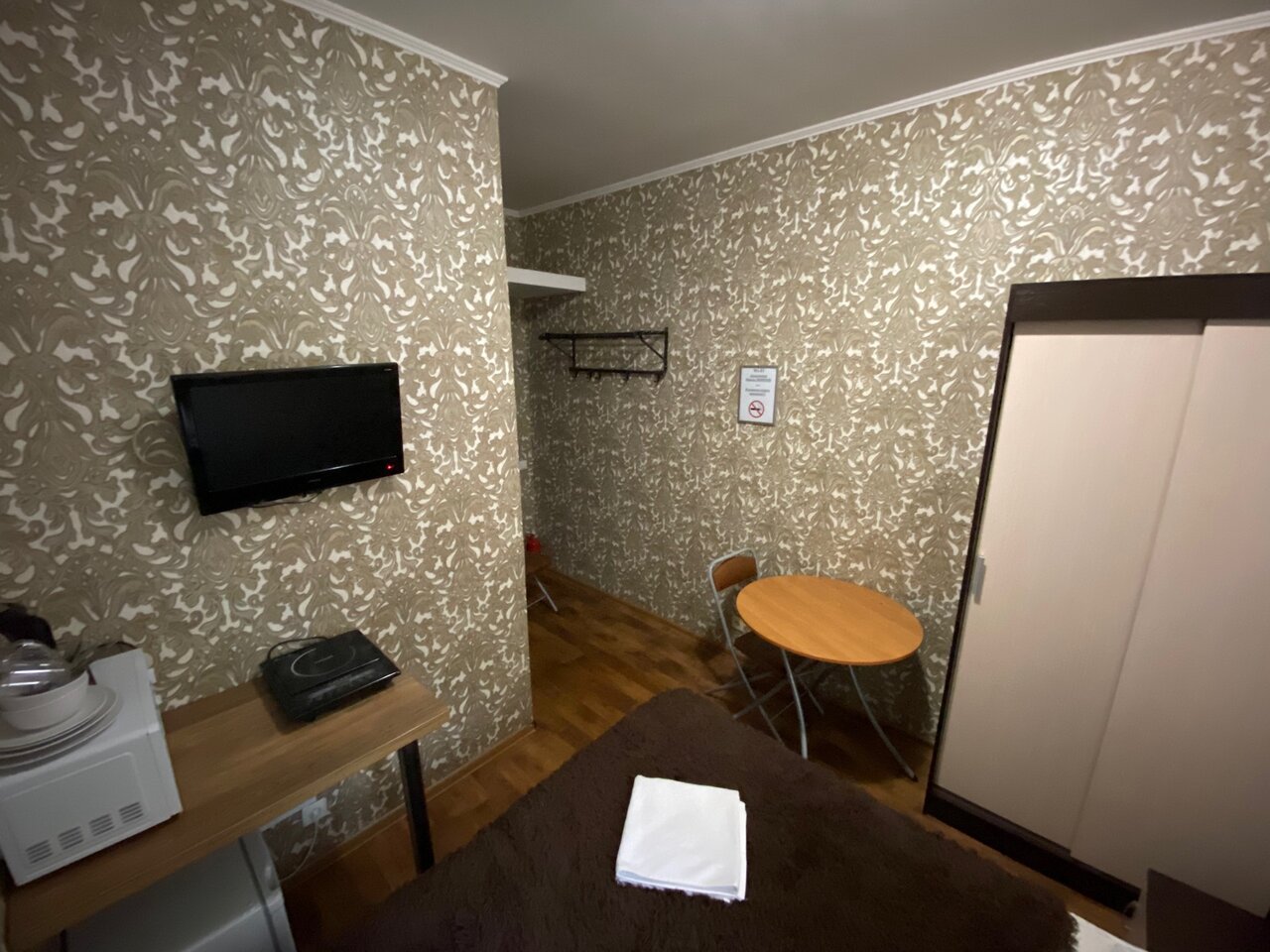 Жили на Черняховского, 31 с 21 по 24.06. Заплатили за 3 ночи — 10 600. Никому это место порекомендовать не могу, номер от грязи убирали сами. Уборщица Гуля убирается так — выкидывает мусор из ведра и грязной, бог весть когда мытой тряпкой, развозит по полу ту самую грязь, которую должна убрать. В итоге, посмотрев на её мучения, мы взяли у неё полотенце и чистили номер сами. Фото тряпки после уборки приложу. На плинтусах грязь в перемешку с пылью, в палец толщиной, под кроватью не убираются наверное в принципе. Также в номере обнаружены были осколки, которые мы убрали тоже сами. Запах в номере отвратительный, окно нужно держать открытым, но номер на первом этаже, окно на улицу и не защищено никакой решёткой. Уходя на целый день, думайте, что вы рискнёте из ценных вещей в номере оставить. Унитаз расположен уникальным способом, если хотите сидеть на нём с закрытой дверью, то можно сесть на него только с боку. А так ноги не помещаются. Мрак и отстой.