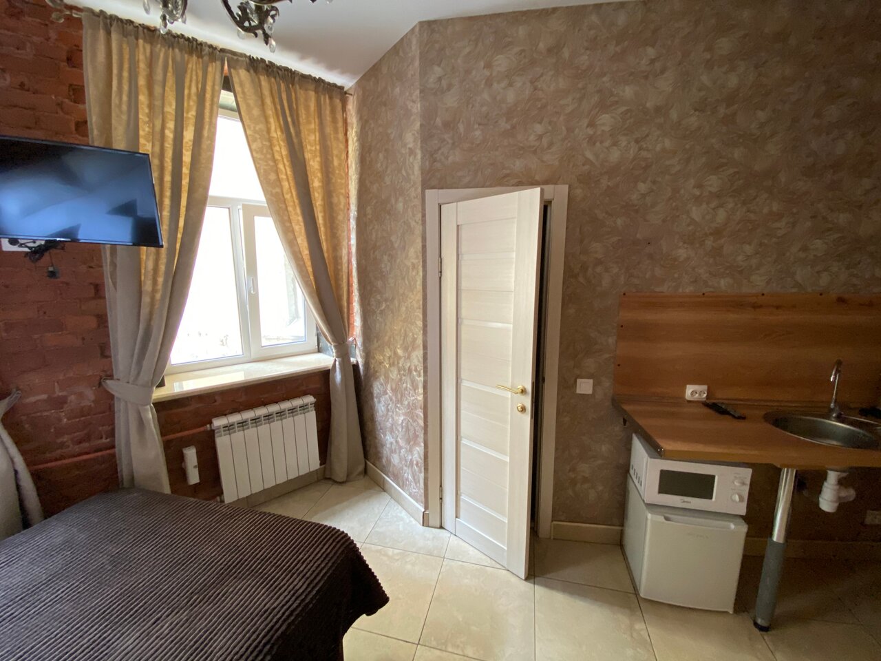 Хорошая комната для ночевки, за такую цену это просто отличные аппартаменты, всё соответствует описанию, бытовая техника есть и всё работает, всем рекомендую