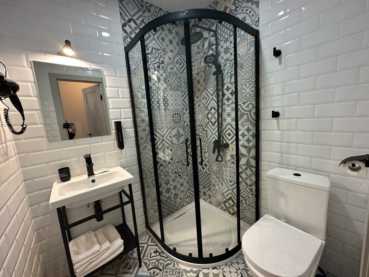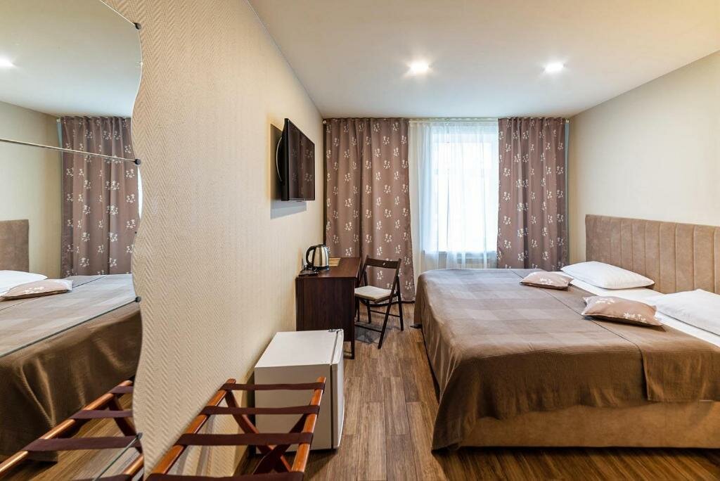 Отличный отельчик с удобным расположение ! Персонал отзывчивый , чай кофе халявный в номере есть холодильник , чайник , телевизор и даже фен — кто любит блага человечества и кушать дома , идеально ! На каждом этаже есть Кулер с водой , пей скок хочешь ! Очень понравилось мансардное окно в номере: когда оно открыто с него не дует и это бонус , особенно если ты с малышом, вид ночью в окошко прекрасный , и самое главное нет шума от дороги ! Есть небольшие недочеты в уборке , ещё бы полочек добавила и в Ване вешалок , но это не главное! Кровати очень удобные, да и вообще в номере комфортно светло и уютно !