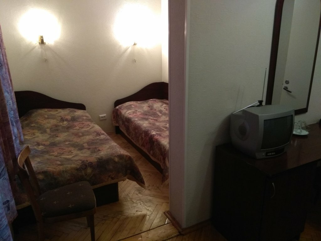 Старенькая гостиница, знавшая и лучшие времена, но, если за недорого, для переночевать нормально. В номере даже холодильничек был. И размер номера приличный.