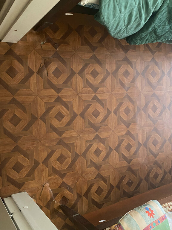 - Устаревший ремонт и мебель (выщербленные полы, старые окна).