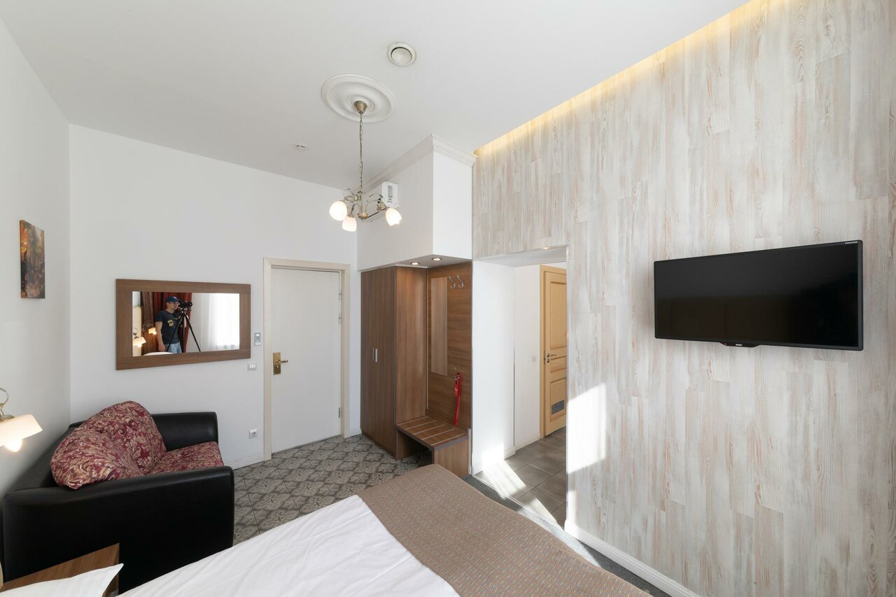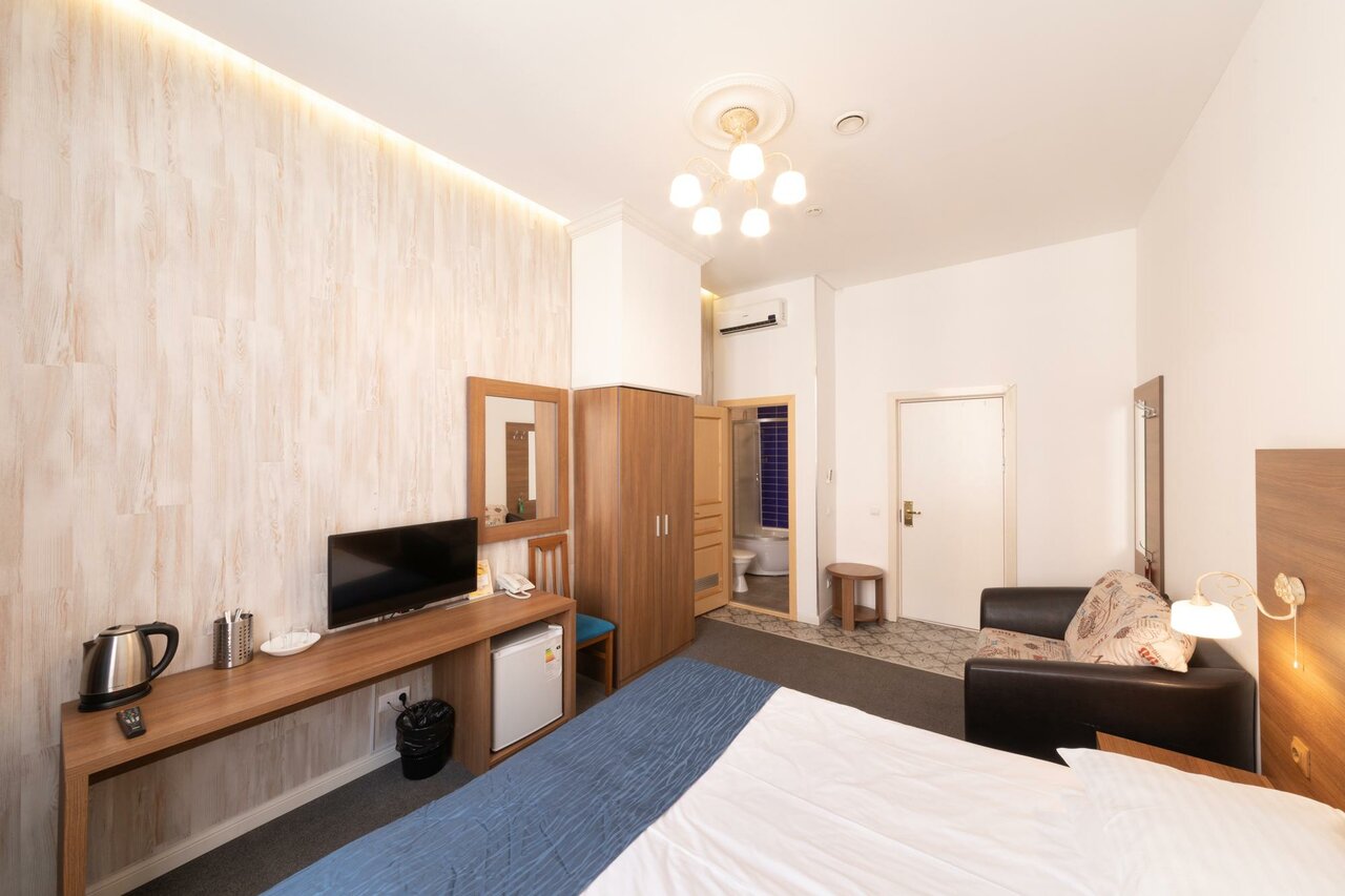 Отличное расположение, чисто, у меня аллергия на пыль так вот ни одной пылинки не было, даже в самых недоступных местах. В отеле тихо, спокойно. Персонал приветливый. Слугуни и вино ресторан на против радует вкусной едой, бизнес-ланчи отличные. Всё достопримечательности в шаговой доступности. Спасибо отелю, приедем ещё и будем советовать вас