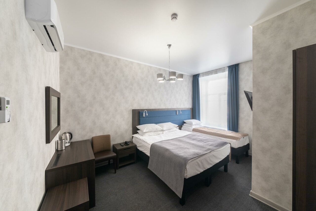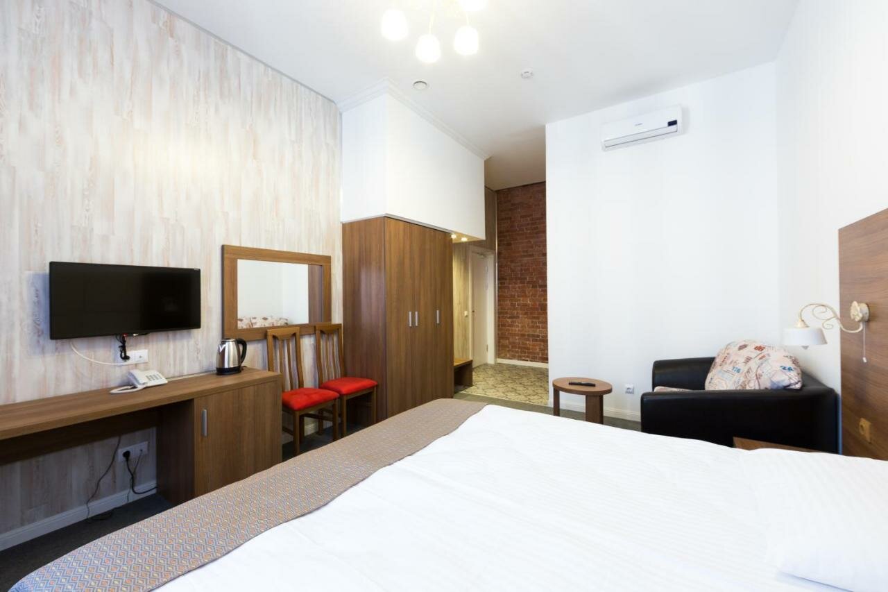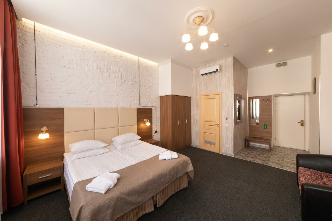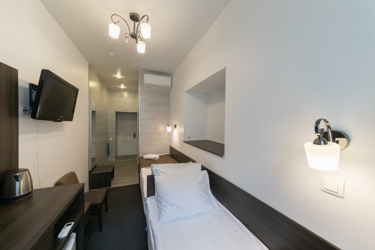 Удобное расположение относительно метро и относительно прогуляться пешком до центра. Брали номер в двуспальной кроватью на 6 дней. Цена/качество соответствует. Чисто, уютно, тепло, классные подоконники для ужинов, планов и мечт. Из недостатков, которые мы не сильно замечали и подстороились, холодная вода из душа вечером. Требовалось долго спускать воду. Мы придумали мыться утром, достаточно горячая вода) Плюс — организация питьевой воды, волшебный крантик) хорошая, вкусная вода ( проверно). Есть свч, утюг, камера хранения если уезжаешь позже звявленного времени. Планируем бронировать номер для родителей — полагаем, это оценка качества. Удача и успехов отелю!!!