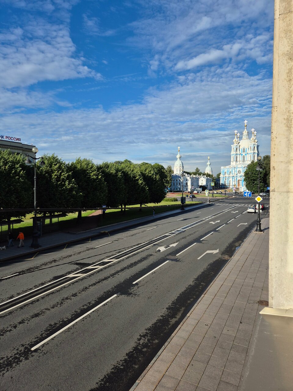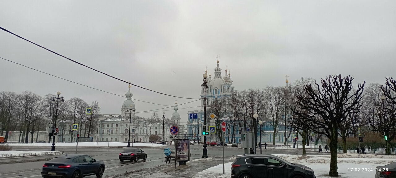 - Удобное расположение (центр, рядом остановки, Смольный собор, парк).